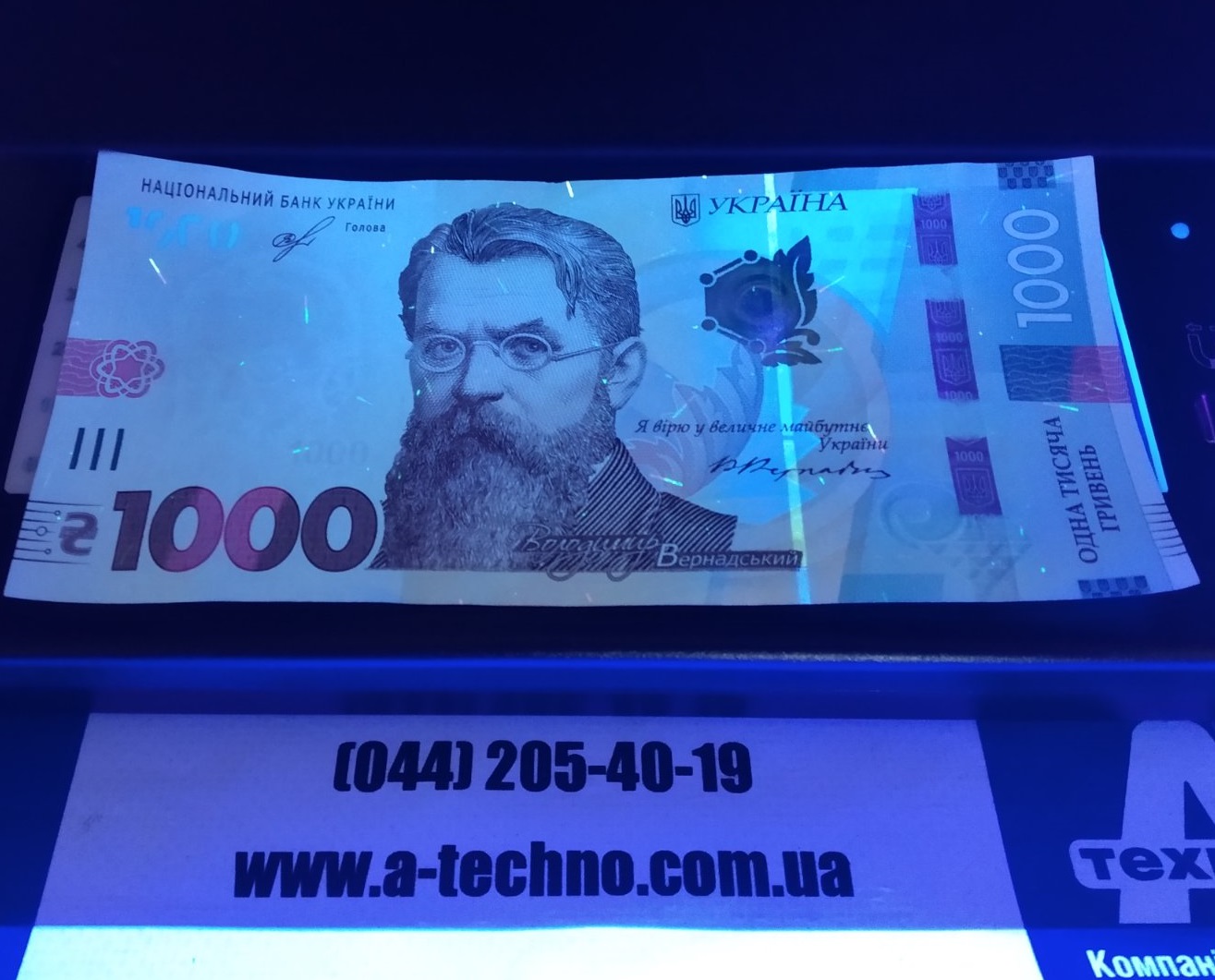 Для детальной проверки подлинности 1000-гривневой банкнот стоит купить детектор валют или воспользоваться уже имеющимся. Также большинство счетчиков банкнот обладают различными видами встроенной детекции. При этом для базовой проверки можно рассматривать детекторы даже только с ультрафиолетовой детекцией. Данный защитный признак достаточно хорошо выражен на новых банкнотах.