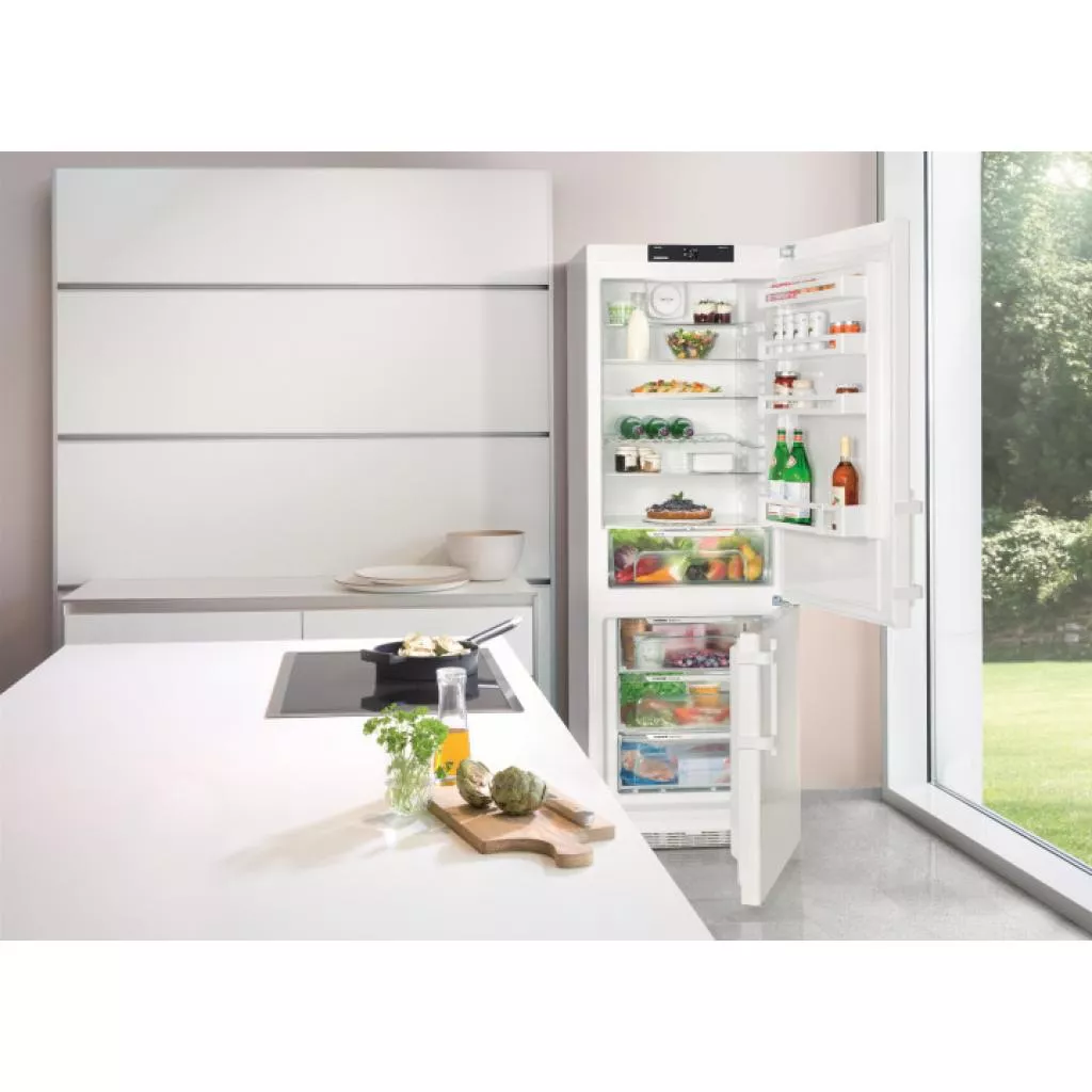 Холодильник Liebherr CN 5735 – это продвинутое устройство из серии (модельного ряда) усовершенствованных бытовых приборов BluPerformance. Его отличительными чертами стали премиальный дизайн с покрытием, на котором не остаются отпечатки, предельно высокая перечень функций и возможностейьность, продуманный полезный объем, антибактериальное покрытие. Продуктивность технологии NoFrost, которая стала основой для функционирования устройства, сложно переоценить: вам не придется размораживать холодильник, т.к. в нем не образуется лед.