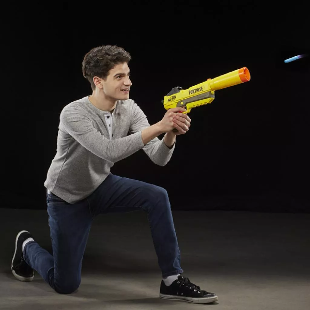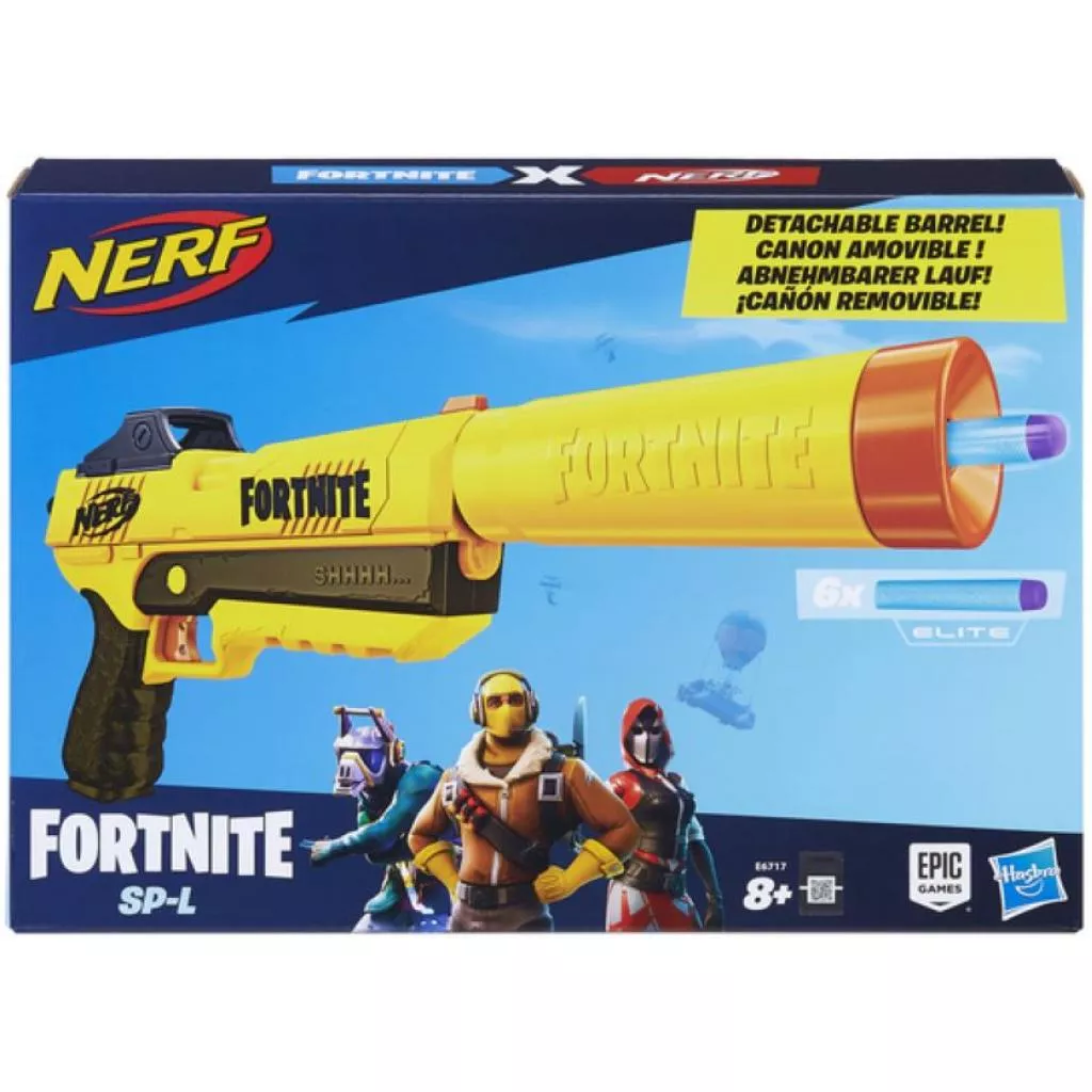 Бластер Nerf Fortnite SP-L имеет в комплекте еще и “глушитель”, на случай необходимости стрелять на большое расстояние. Сняв “глушитель” – бластер становиться совсем компактным, удобным для быстрой игры.