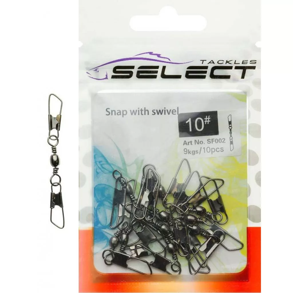 Вертлюжок с застежкой Select SF002 – тандем из двух застежек и одного вертлюжка. Классическая пластинчатая система застежек. Универсальная конструкция застежки и вертлюжка даст возможность Вам применять в любом виде ловли – как в поплавочной, так и в донной ловле. Застежка с пластинчатой системой отличается невысокой ценой и простотой в использовании.