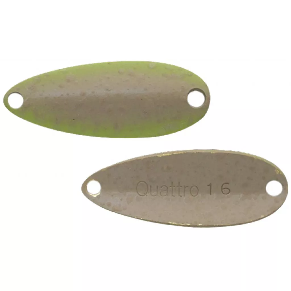 Jackall Quattro имеет узкое тело и выраженный продольный изгиб. Благодаря использованию толстого листа алюминия, блесна, при сравнительно небольших габаритах, обладает приличной массой.