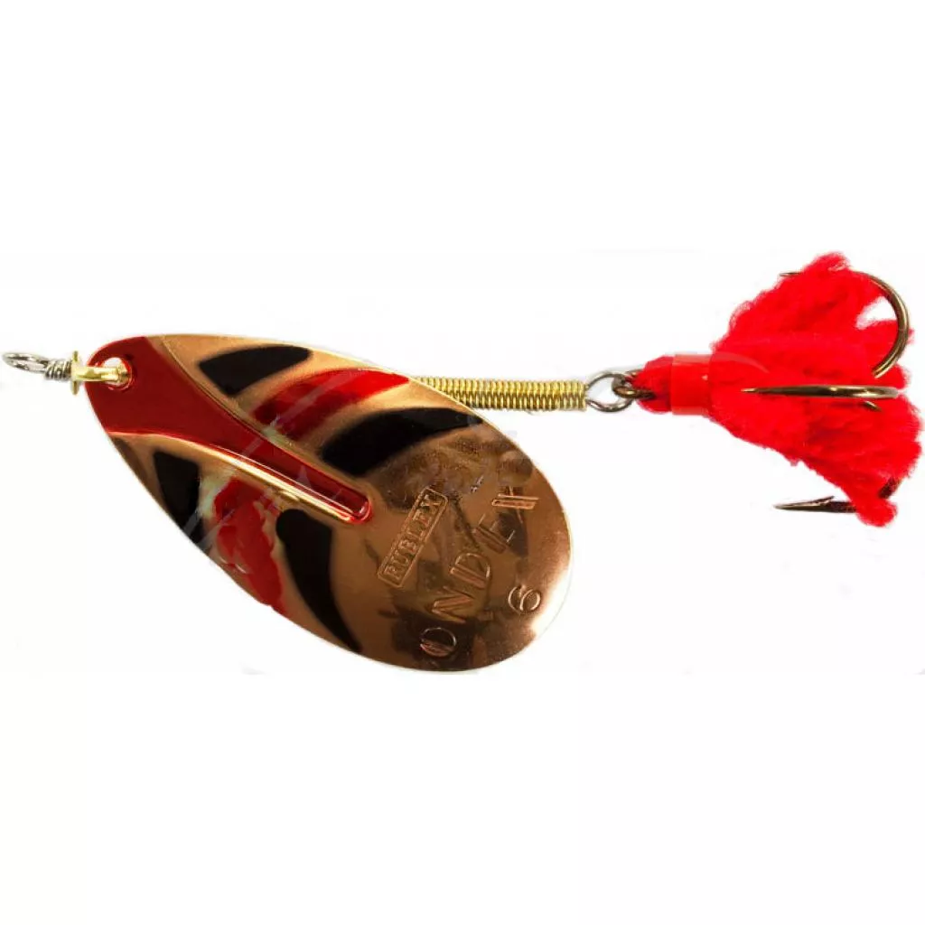 Эта блесна при своем довольно объемном лепестке имеет небольшой вес. Это дает возможность рыболову медленно провести блесну в верхних слоях воды, что особенно актуально при ловле в водоемах с заросшим дном и малыми глубинами. Тройной крючок оснащен и укомплектован красной кисточкой-опушкой, которая стабилизирует игру блесны и дополнительно привлекает хищную рыбу. Также Ондекс предусматривает переднюю огрузку разборным грузом-ушастиком. Переднеогруженый Rublex Ondex приобретает совершенно новые возможности и хорошо подходит для джиговой ловли. Случается, что джиговую вертушку пассивный хищник атакует охотнее силикона.
