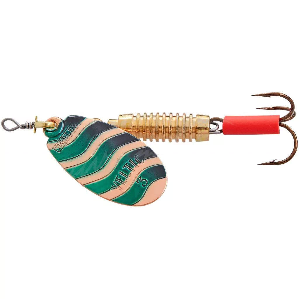 Лепесток блесны Veltic легко узнать с первого взгляда, он имеет форму слегка удлиненного яйца. На внешней стороне лепестка вытеснены узоры в виде волны, которые предают дополнительный эффект при игре даже на неокрашенных моделях. Блесна имеет очень выразительную игру и не сбивается. Сердечник Rublex Veltic имеет смещенный центр тяжести, который находится в его нижней части. Благодаря этому увеличивается дальность заброса и не только… При медленной проводке блесны, она становится практически вертикально дну и идет на грани сбоя. В момент касания лепестка дна, игра сбивается – в этот момент часто происходит поклевка. Как многие модели Rublex, Veltic имеет систему быстрой замены крючка "en trombone". Модель эффективна для использование (эксплуатации) в глубоких местах, а так же в реках со средним и медленным течением. Блесна Велтик предоставлена в шести размерах - от 1 до 6 и рассчитана на ловлю средней и крупной щуки, судака, а также крупного окуня как на быстром течении, так и в спокойной воде.
