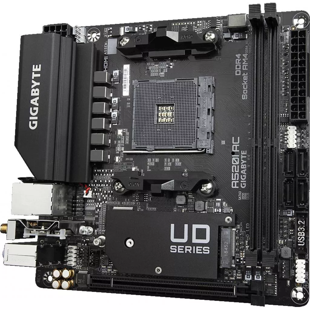 Gigabyte A520I AC - компактная материнская плата для третьего поколения процессоров AMD Ryzen. Вызывает невероятные эмоции ярким дизайном, прекрасно подойдет для геймерского ПК с прозрачным корпусом и компонентами с подсветкой или массивными радиаторами. Принадлежит к семейству Ultra Durable на базе чипсета AMD A520.