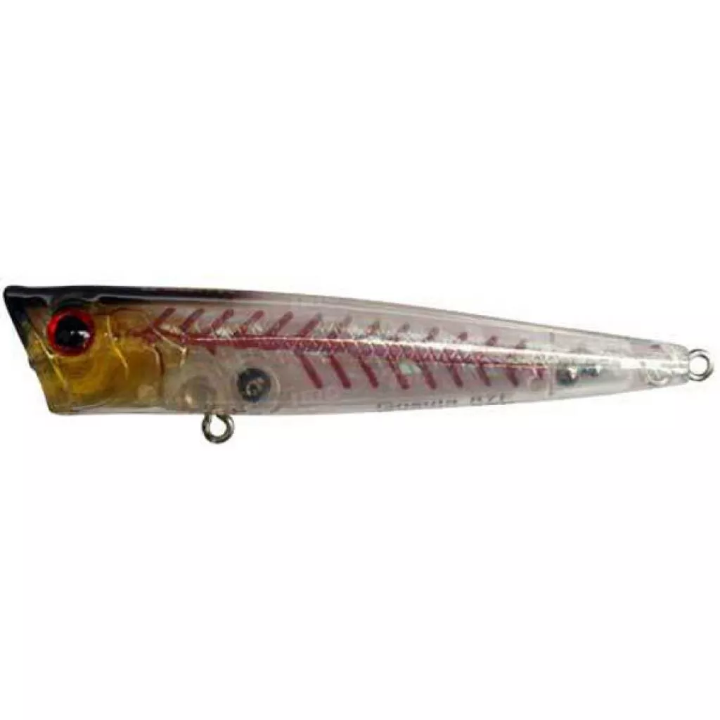 Воблер Usami Gosuta - прогонистый поппер для ловли на средних и дальних дистанциях. Модель неупористая, даёт средней силы "хлопок" во время рывковой проводки. На паузе располагается практически горизонтально.