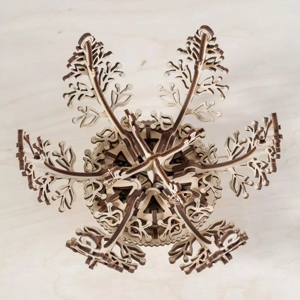 3D пазл от Ukrainian Gears Механический цветок — креативная идея для подарка любимой. Цветок-ящик: элегантные лепестки, балерина и дерево счастья внутри.