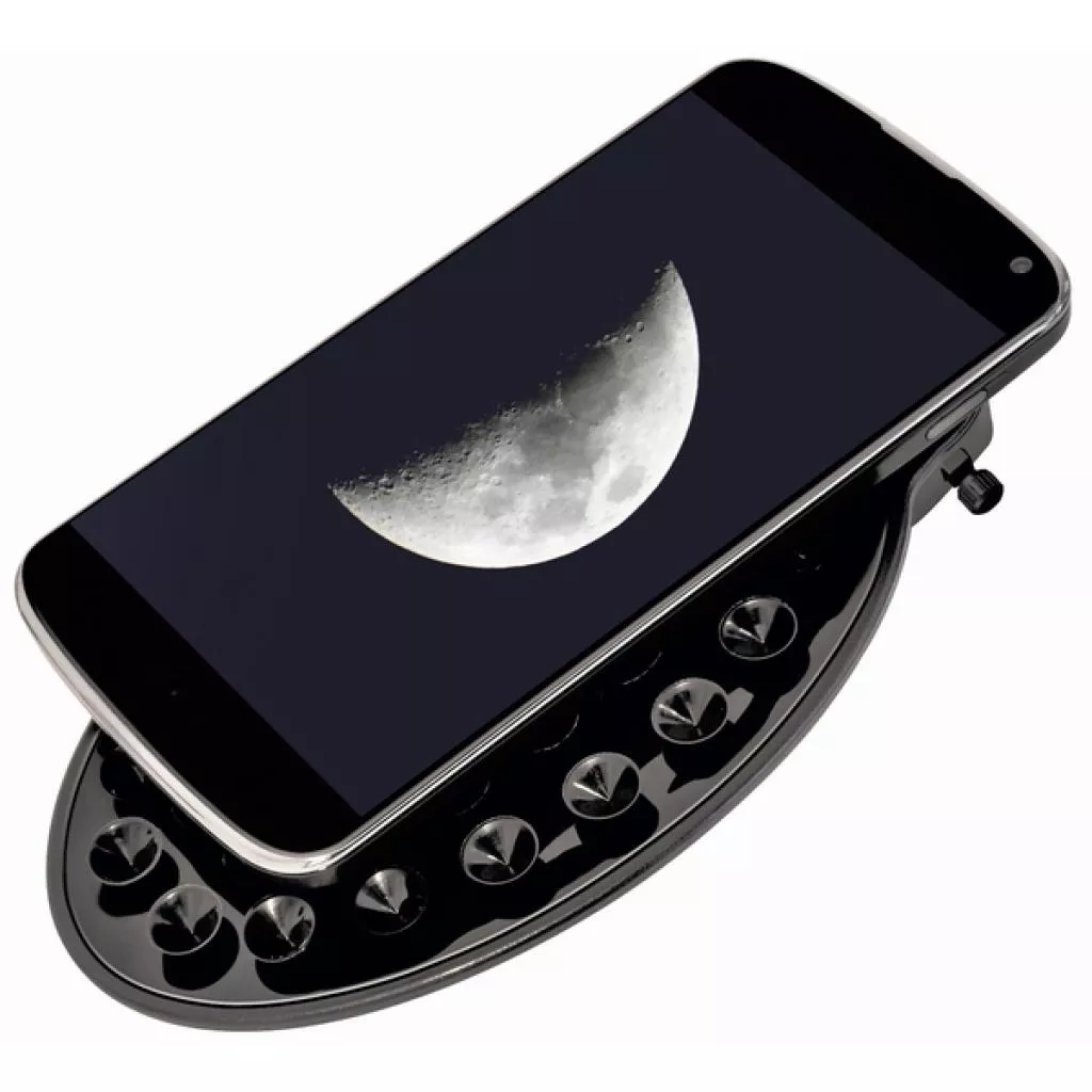 В комплектацию входит адаптер для камеры смартфона (планшета). Адаптер крепится на выбранном окуляре и дает возможность проводить фото и видеосъемку основной либо фронтальной камерой гаджета. Гладкая тыльная сторона смартфона надежно крепится с помощью множества присосок адаптера (в случае рифленой тыльной поверхности смартфона рекомендуется использовать фронтальную камеру).