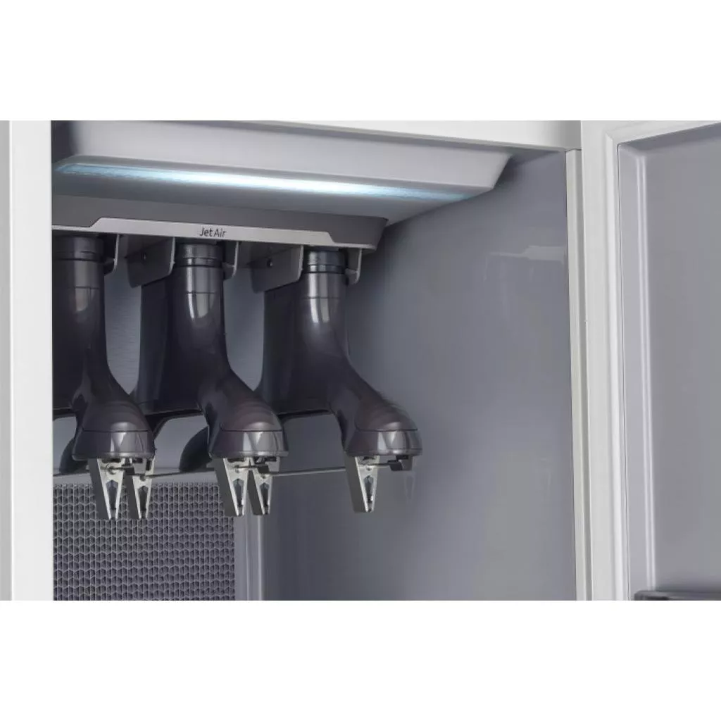 Благодаря системе мощных воздушных потоков Jet Air и специальным воздушным вешалкам Air Hangers одежда полностью продувается изнутри наружу и в двух направлениях – вверх и вниз. Такая система эффетивно устраняет глубоко въевшуюся пыль из тканей практически бесшумно и без вибрации*!