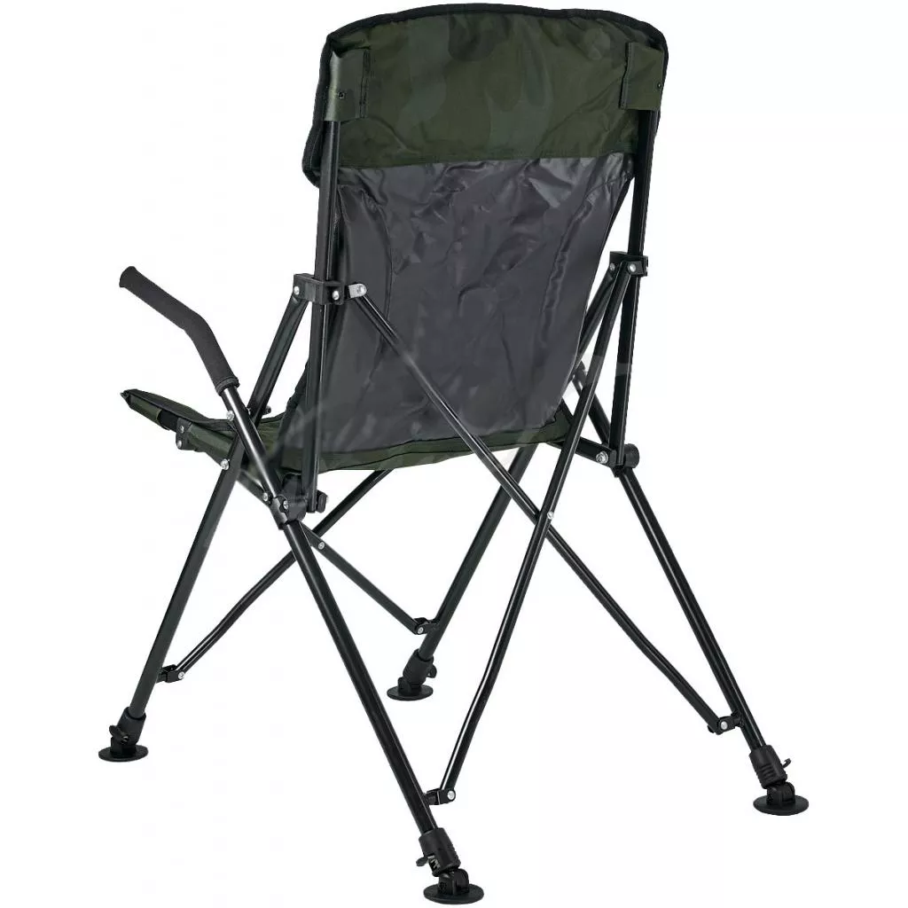 Кресло Brain Camo Camp предназначено для комфортного пребывания на природе, в кемпинге или на рыбалке. Оно имеет довольно лёгкую, но прочную конструкцию, за счёт использование (эксплуатации) стальных трубок в качестве несущих деталей. Сиденье выполнено из прочного полиэстера с ПВХ покрытием, который отличается высокой износостойкостью, легко чистится и долго сохраняет свой первоначальный вид. В его верхней части и по бокам предусмотрены мягкие вставки из вспененного материала. Кресло имеет подлокотники с накладками из неопреновой ткани, которые при необходимости можно снимать для стирки. Ножки оснащен и укомплектованы поворотными накладками, для их ровного расположения на Ппрактически любой поверхности и предотвращения проваливания в мягкий грунт. Быстрозажимной механизм дает возможность отрегулировать высоту сидения и выставить его устойчиво на любых неровностях.