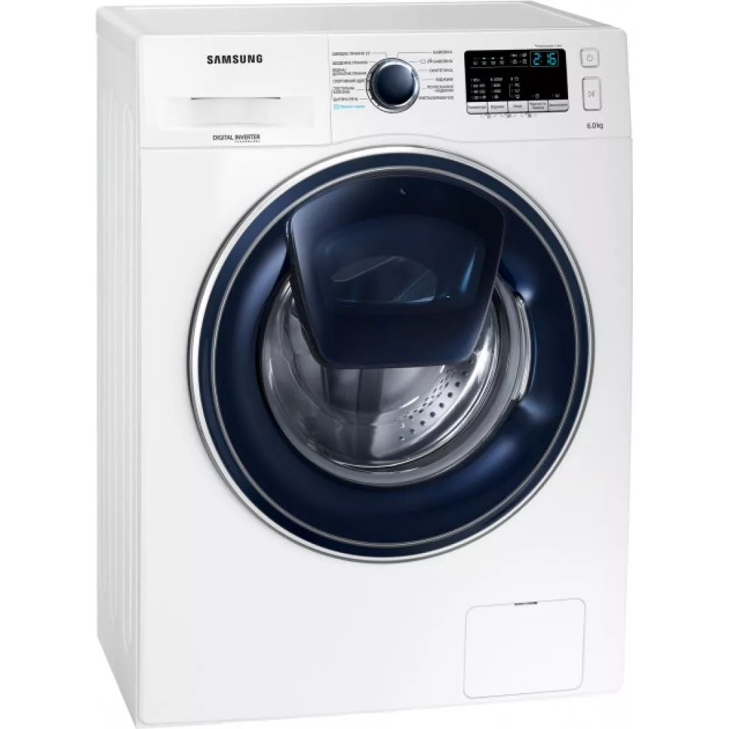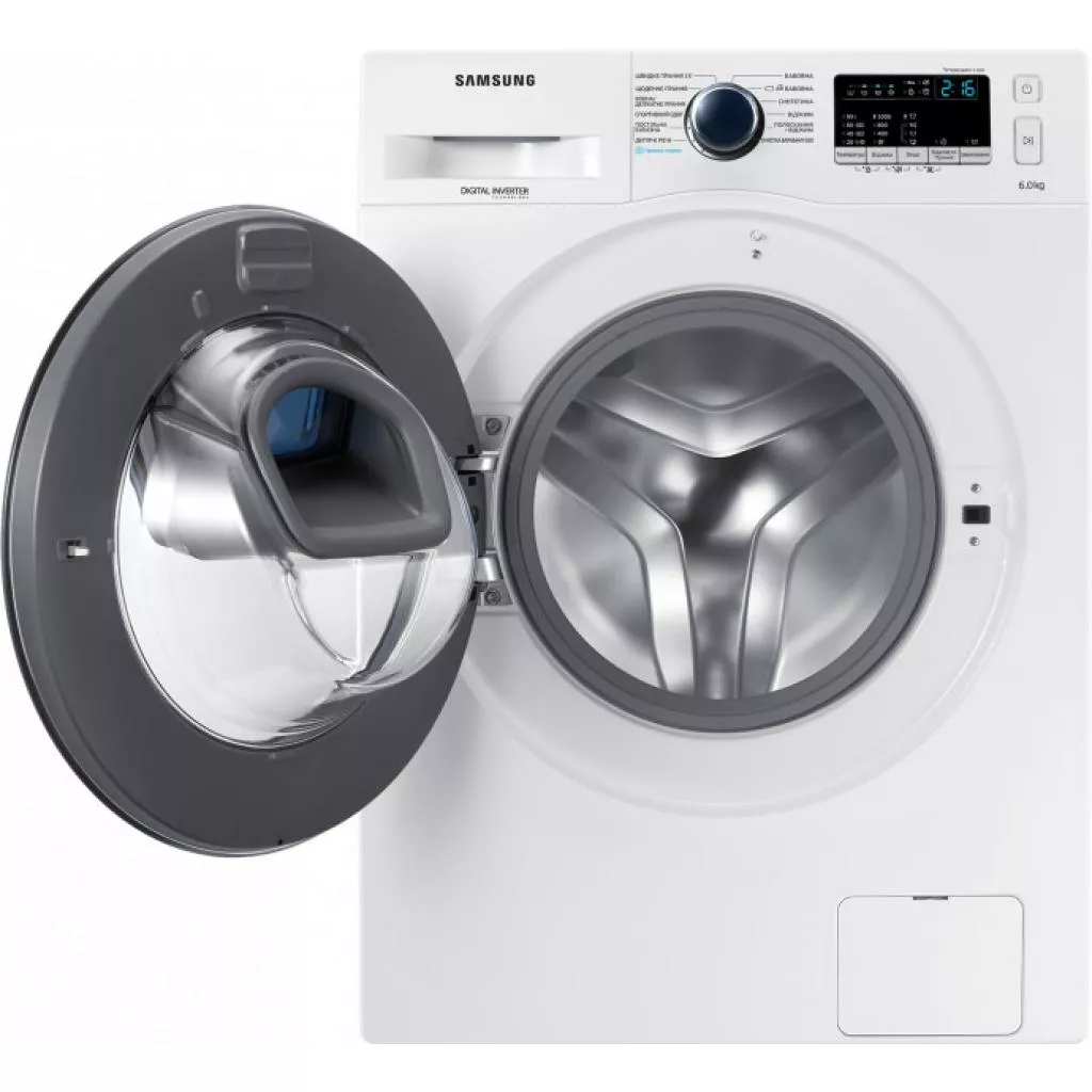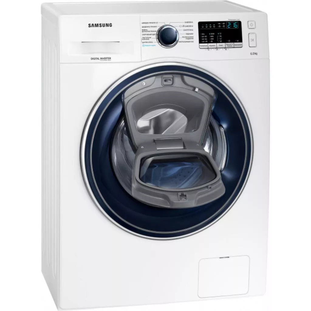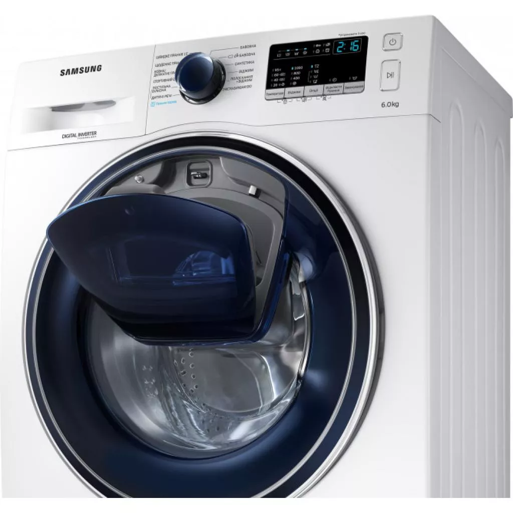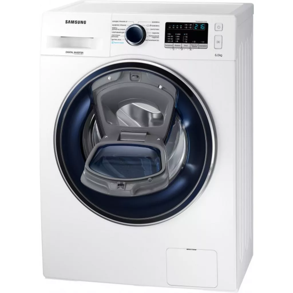 Стиральная машина Samsung WW60K40G09WDUA — современная эффективная модель от известного мирового производителя с технологией Add Wash и функцией пара. Вы сможете добавить любую вещь когда угодно, даже во время запущенного цикла стирки. Например, найденный второй носок или рубашку, которую также необходимо постирать, детскую только что замазанную футболку — все это можно вложить в барабан стиральной машины во время работы. Кроме того, в специально сконструированную дверцу можно будет добавить необходимое моющее средство. Или вещь, которую нужно просто прополоскать или высушить.