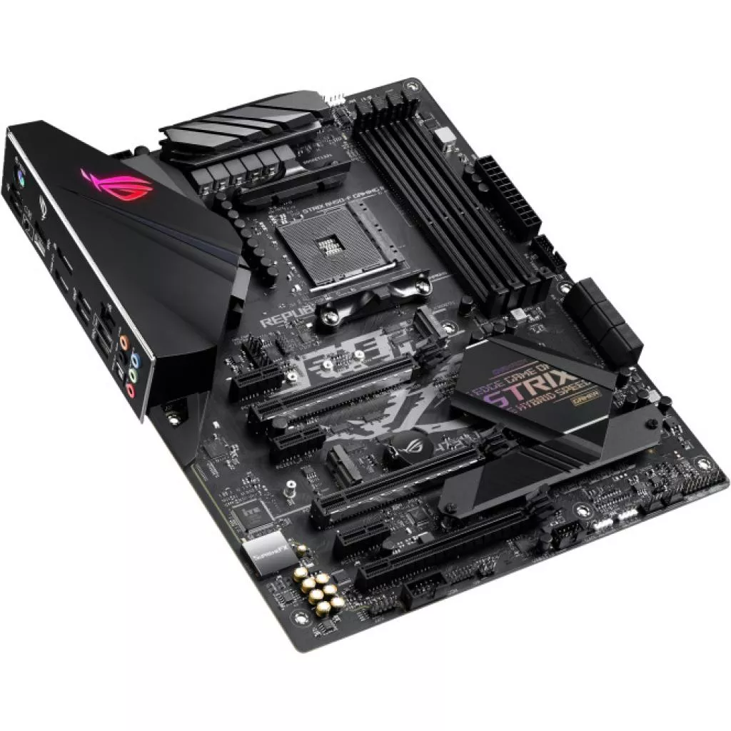 Игровая материнская плата на базе платформы AMD AM4: форм-фактор ATX, чипсет AMD B450, поддержка памяти DDR4-4400, интеллектуальное шумоподавление для микрофона, интерфейсы M.2, USB 3.2 Gen2 и SATA 6 Гбит/с, синхронизируемая подсветка Aura