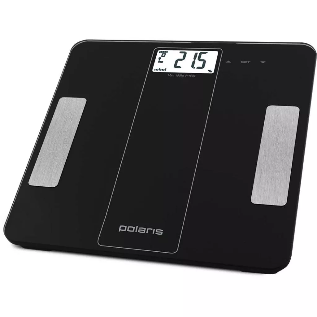 Напольные диагностические весы PWS 1860DGF от компании Polaris с платформой из сверхпрочного стекла, максимальным весом в 180 кг и ценой деления 100 грамм. Весы дают возможность проводить измерение процентного содержания жировой, мышечной, костной массы и воды в организме.