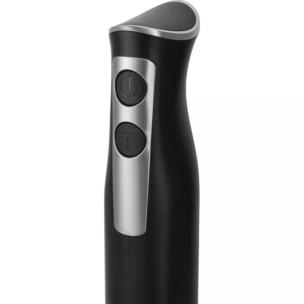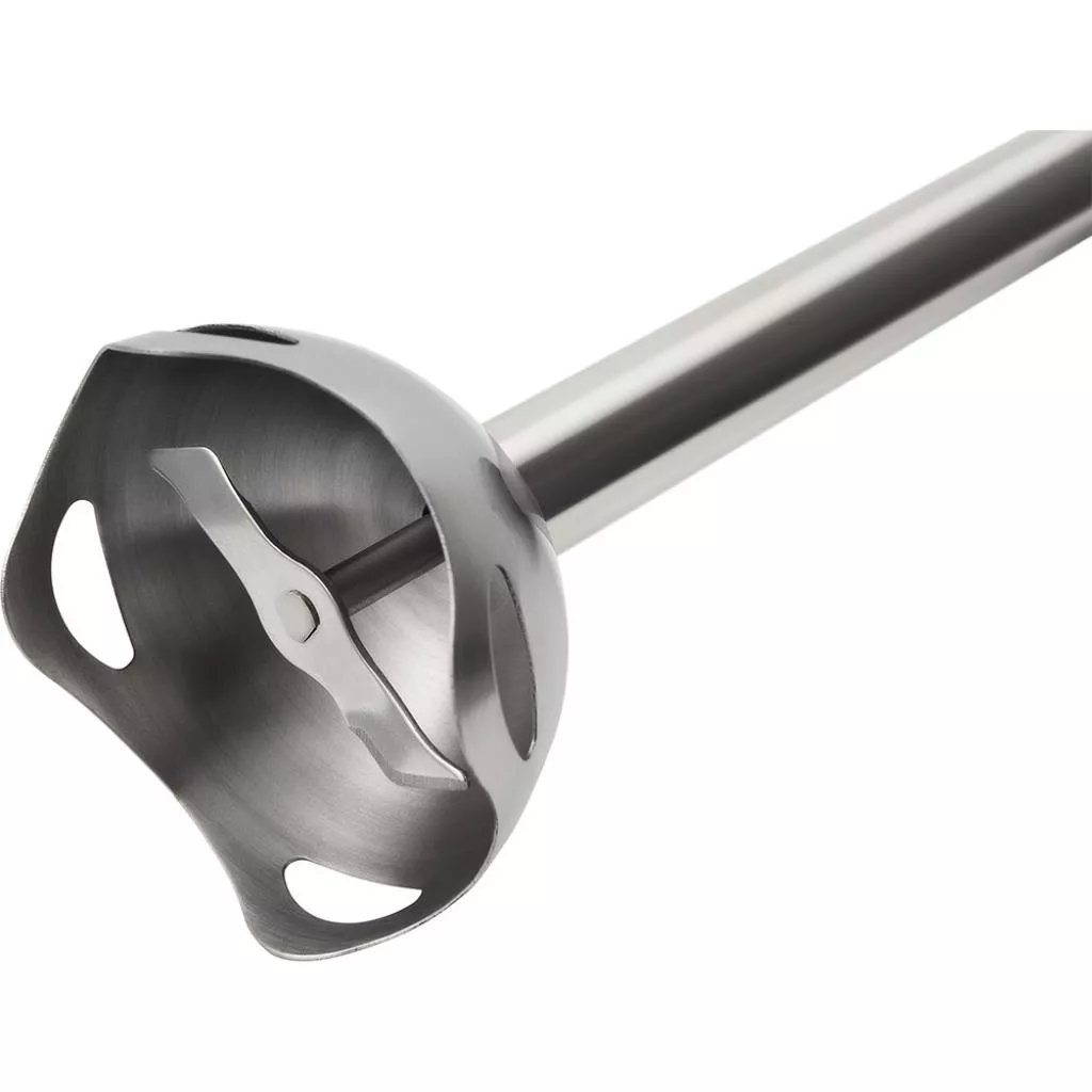 Ножка блендера изготовлена из высококачественного нержавеющего метала, а тип прибора является погружным. Ручка у представленной модели эргономичная и комфортная для длительного использование (эксплуатации). Дополнительно в прибор встроен турбо режим с помощью которого можно практически в два раза быстрее измельчить любые продукты. Измельчение обеспечивают специальные ножи PRO Blade, которые не теряют свою работоспособность даже через длительный период эксплуатации.