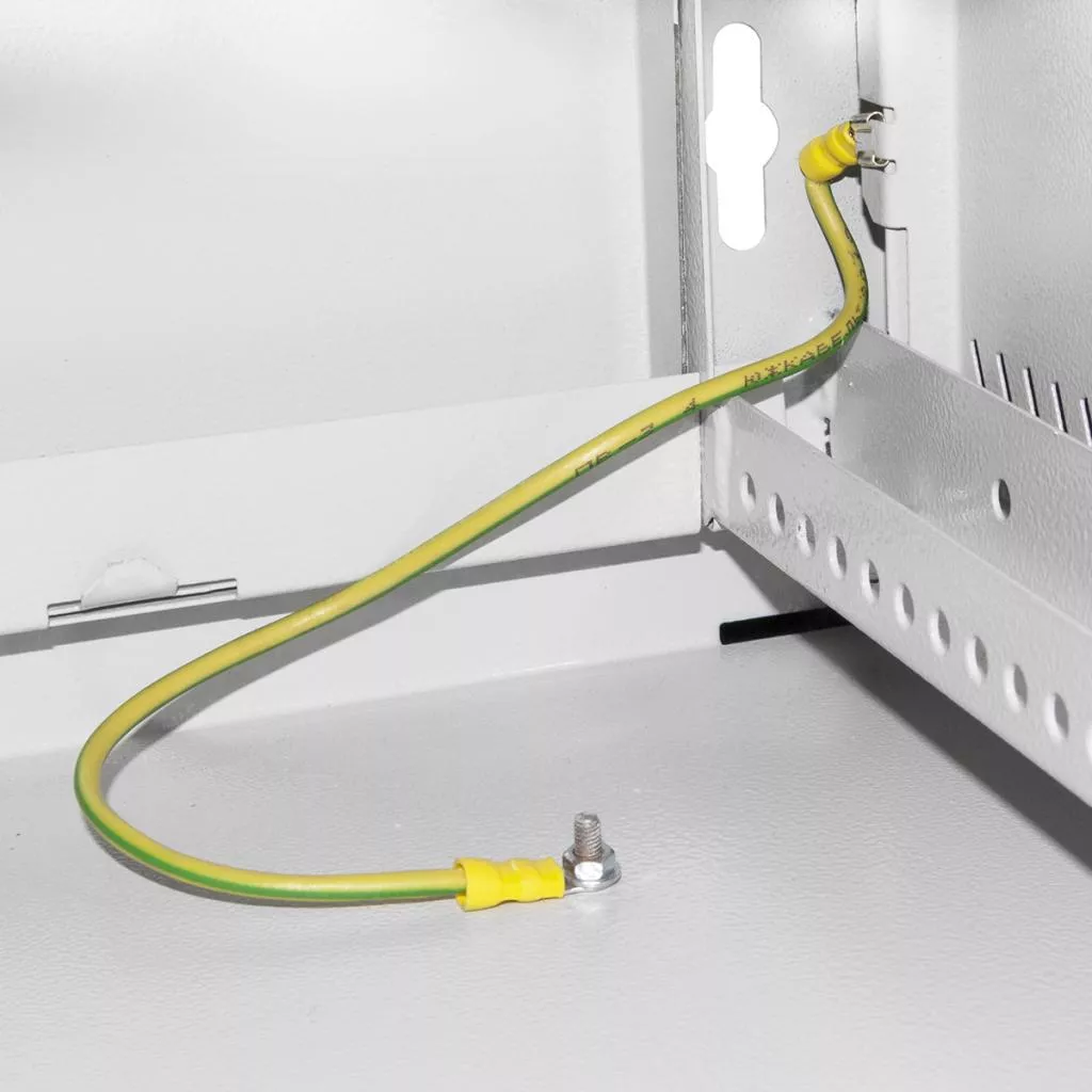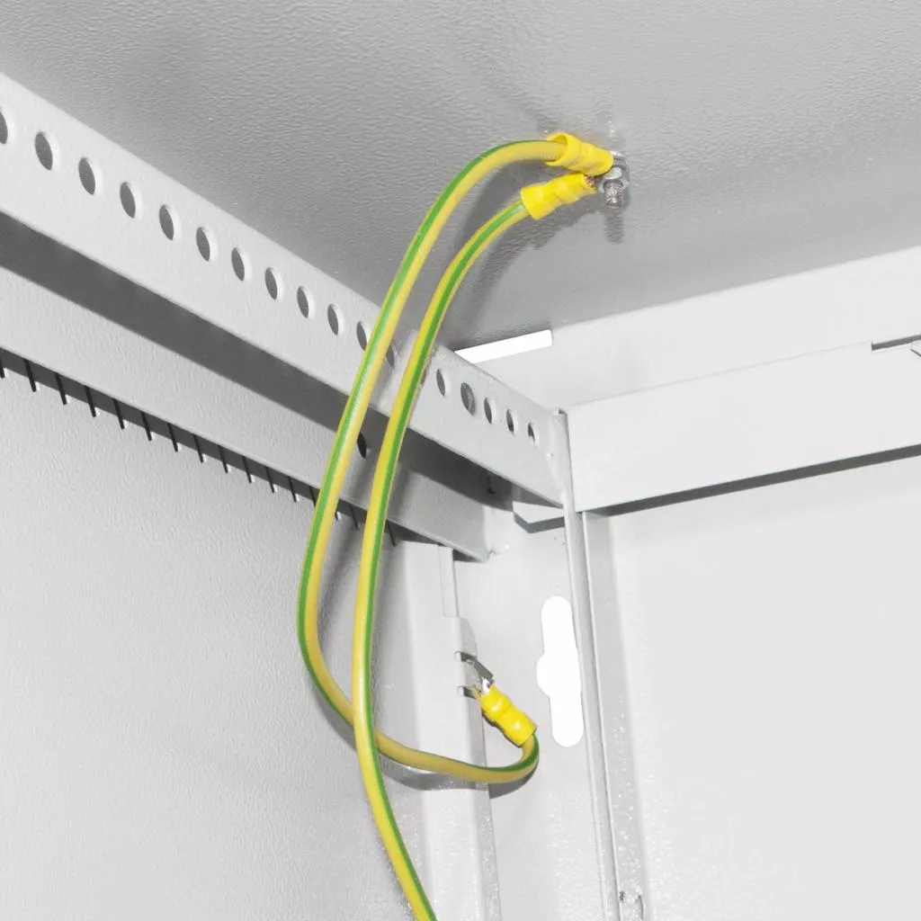 Для оборудования в закрытом шкафу важным фактором является вентиляция. Воздух циркулирует благодаря вентиляционным отверстиям на боковых стенках. Есть возможность установить блоки вентиляторов в верхнюю и нижнюю стенку шкафа, для этого необходимо провести демонтаж заглушек и закрепить вентиляторы винтами. Заземление предусмотрено в стандартной комплектации. У вас не возникнут проблемы с монтажом, так как боковые стенки с легкостью можно снять, а после прикрепить их с помощью защелки, что располагаются внутри шкафа. Таким образом, монтаж оборудования можно производить с 3-х сторон. Шкаф подвешивается за 4 отверстия на задних ребрах. Поставка осуществляется в разобранном виде, что оптимизирует расходы на доставку. Сборка шкафа осуществляется в течение получаса.