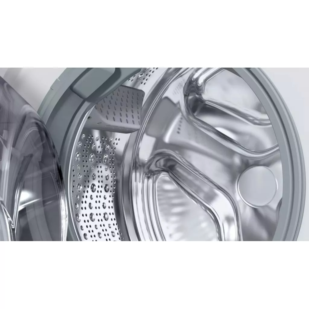 Bosch WHA122XEBL можно купить по доступной цене. Внешний корпус прибора выполнен из поликарбоната – материала крепкого и долговечного, который не поддается коррозии и временным структурным изменениям. Стиралка относится ко второму классу защиты от поражения током. Для защиты пользователя и безопасного процесса стирки все внутренние детали защищены от контакта с водой.
