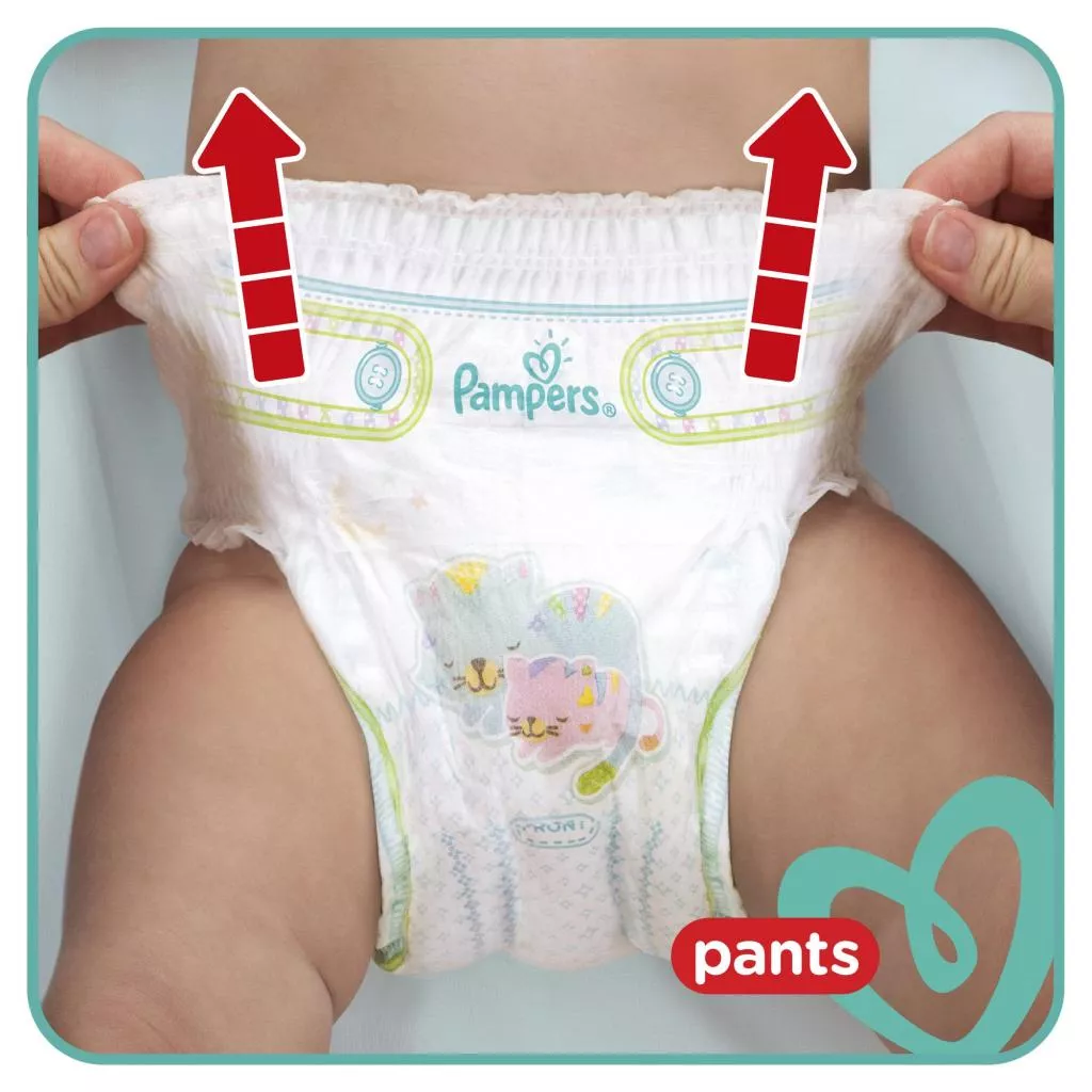 Когда малыши вертятся или ползают, подгузники надевать сложно. Тогда стоит использовать трусики Pampers Pants. Трусики Pampers легко надевать и снимать благодаря тянущимся боковинкам. Благодаря эластичному пояску трусики повторяют движения малыша и обеспечивают комфорт и защиту от протеканий. Три впитывающих канала помогают равномерно распределять влагу, не допуская образования мокрого комка между ножками* и обеспечивая воздушную сухость на срок до 12 часов. С трусиками Pampers Pants менять подгузник легко, даже если малыш очень подвижен.