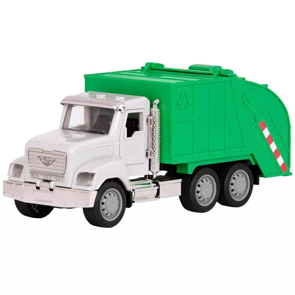 Нажмите на капот и двигатель даже выдает реалистичный звук холостого хода. Повороты заднего погрузчика и контейнер для переработки наклона наклоняются, чтобы выгрузить груз. Это прекрасное дополнение к Ппрактически любой коллекции мусорных машин или строительных грузовика.