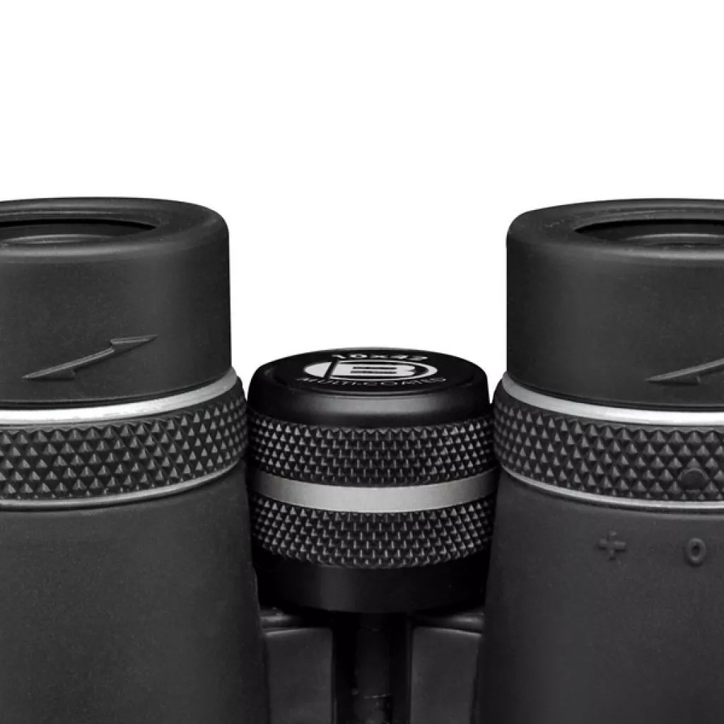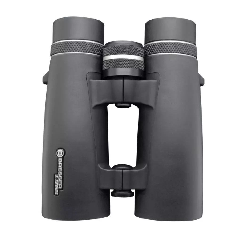 Линейка биноклей Bresser S-Series - одна из самых недорогих среди биноклей призменной системы Roof с открытым двухшарнирным мостом. Bresser S-Series 10x42 одновременно и легкий, и удобный для захвата одной рукой и надежный и стабильный, благодаря более жесткой двухшарнирной конструкции. Стоит отметить также и крышки объективов, прикрепленные поясками к биноклю, и рифленую накатку на диоптрийном кольце и колесе фокусировки, и сам дизайн бинокля, относящий эту модель по внешнему исполнению к более дорогой оптике. Сам бинокль довольно легкий, он укладывается в удобную сумку, закрывающуюся на молнии и на текстильной застежке Velcro, которую можно зафиксировать на поясном ремне или носить на шее.