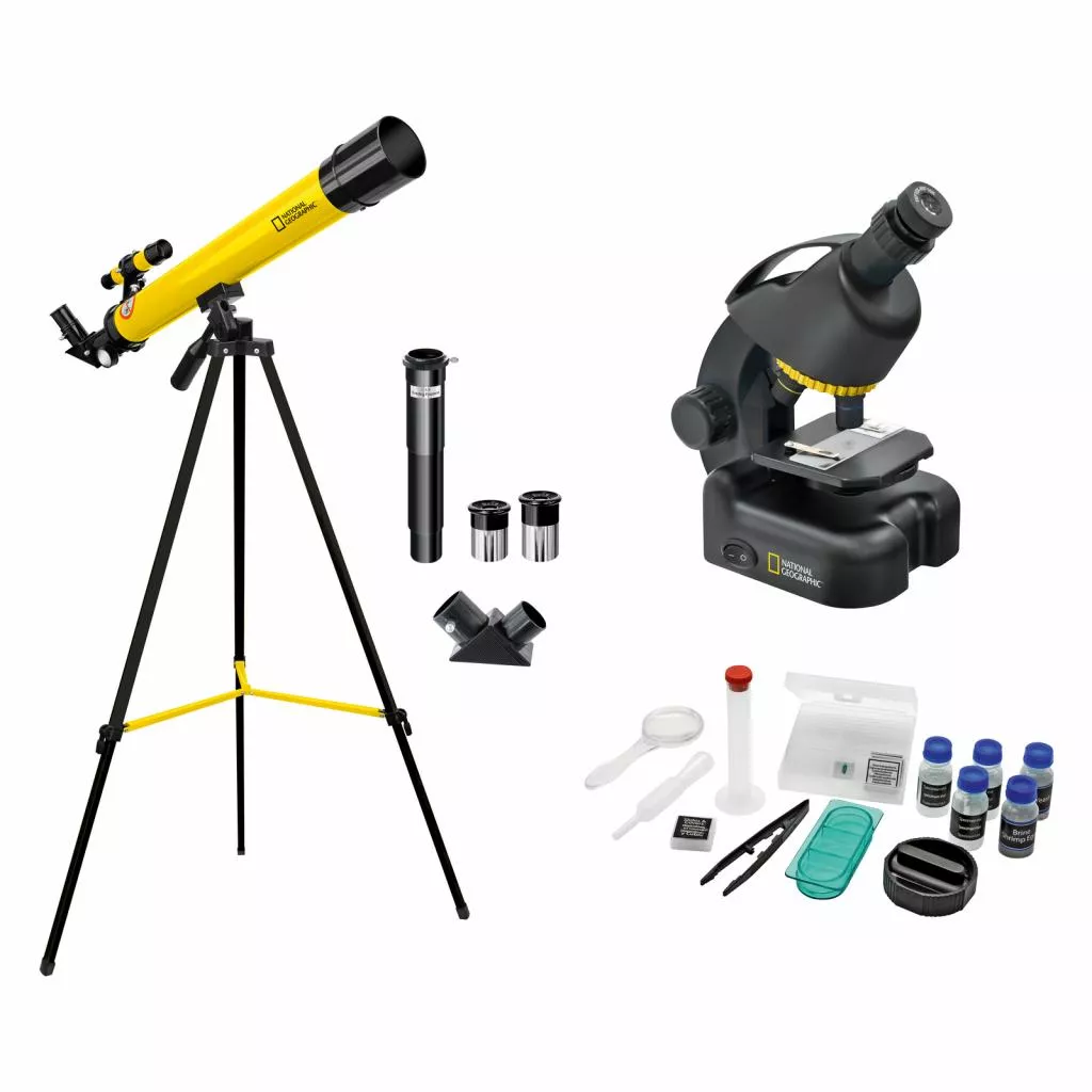 Этот обучающий набор состоит из двух самых популярных моделей микроскопа и телескопа National Geographic. Он откроет вашему ребенку дверь в увлекательный мир астрономии и микроскопии. Телескоп с 150-ти кратным увеличением даст возможность заглянуть в космос, а микроскоп с максимальным увеличением в 640 крат даст возможность ознакомиться с окружающим нас, но доселе невидимым микромиром. Отличительной особенностью данного набора является наличие полноразмерной треноги телескопа и адаптера для камеры смартфона. С помощью данного адаптера, идущего в комплекте, легко фотографировать объекты наблюдений и микроскопа, и телескопа на камеру Вашего смартфона.