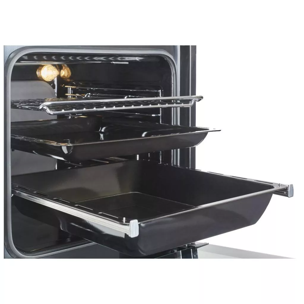 Телескопические направляющие существенно облегчают эксплуатацию духовым шкафом особенно при его интенсивном использовании. Специальные направляющие дают возможность легко и безопасно выдвинуть противень из духовки. Противень выдвигается полностью.
