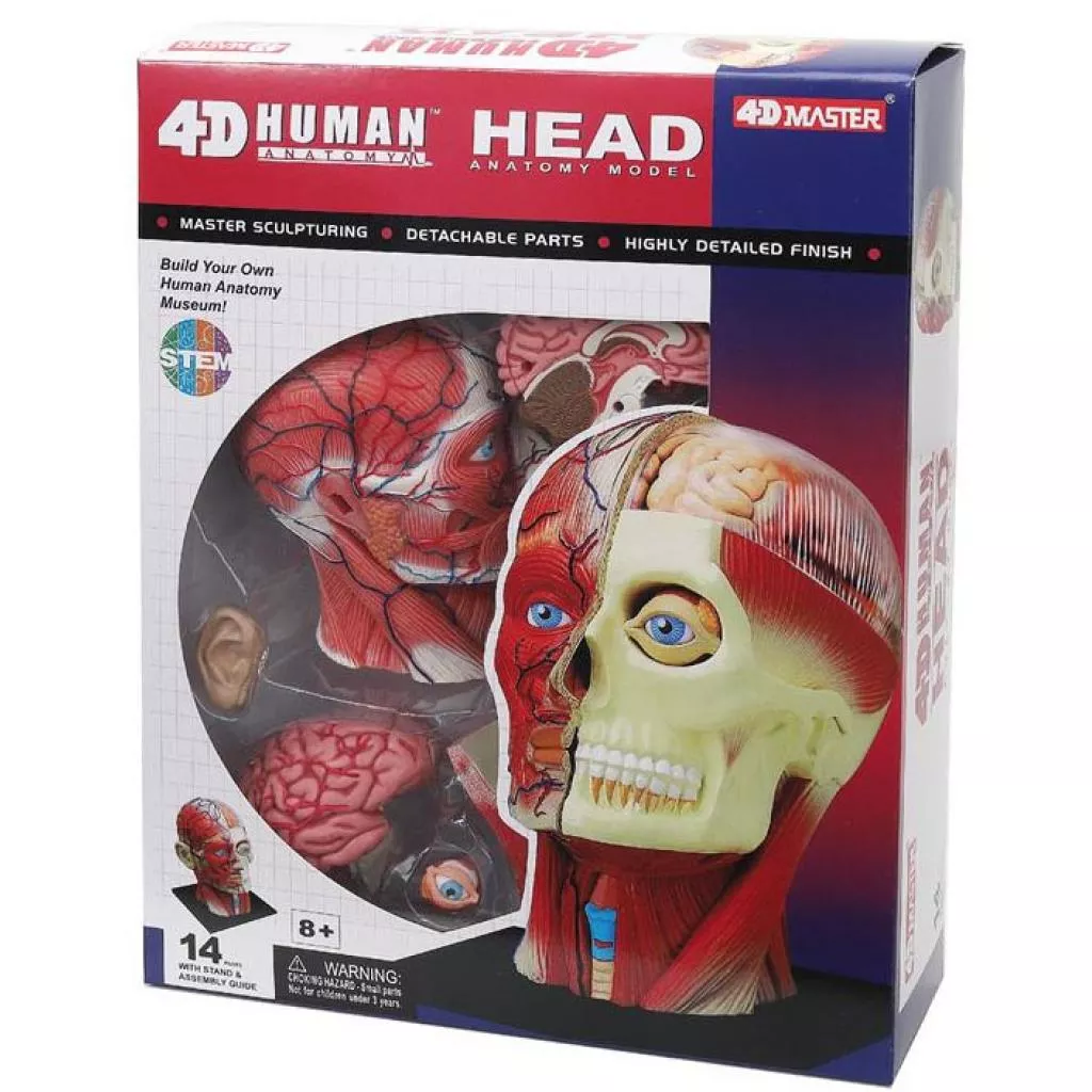 Объемная анатомическая модель 4D Master из серии (модельного ряда) Анатомия человека "Голова человека" в форме 4D-пазла. Хорошая детализация, качественное исполнение, удобная сборка — заинтересует ребенка и поможет в изучении школьной программы.