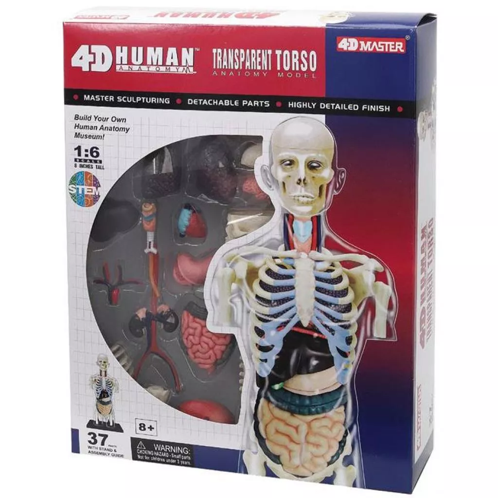 Объемная анатомическая модель 4D Master из серии (модельного ряда) Анатомия человека "Торс человека прозрачный" в форме 4D-пазла. Хорошая детализация, качественное исполнение, удобная сборка — заинтересует ребенка и поможет в изучении школьной программы. Ориентировочное время сборки модели составляет 30 минут.