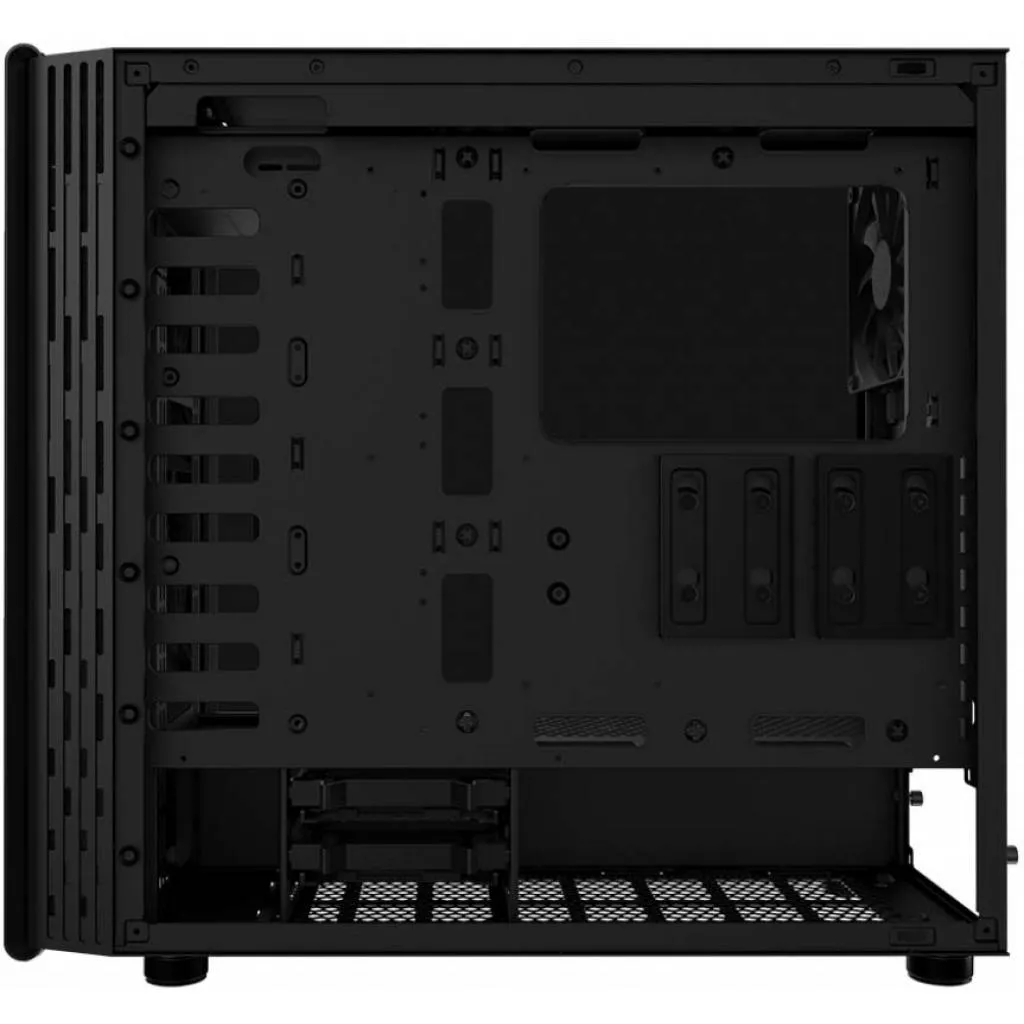Боковая панель корпуса изготовлена из ламинированного закаленного стекла толщиной 5.38мм, а передняя, верхняя и правая панели снабжены внутренней отделкой из хлопка высокой плотности, обеспечивающего хорошую звукоизоляцию.