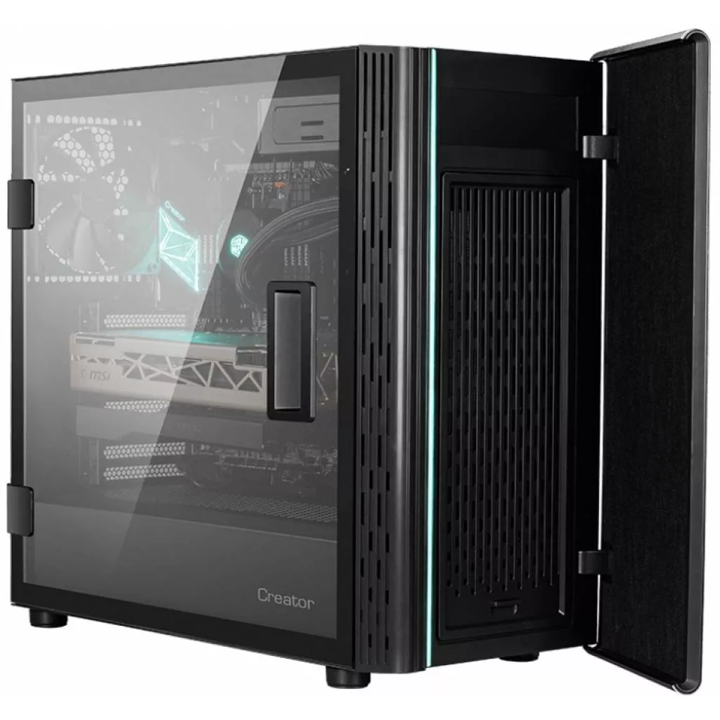 Creator 400 – это первый компьютерный корпус, оптимизированный под сборку конфигураций для профессиональной работы по созданию мультимедийного контента. Его боковая панель изготовлена из ламинированного закаленного стекла толщиной 5,38 мм, а передняя, верхняя и правая панели снабжены внутренней отделкой из хлопка высокой плотности, обеспечивающего хорошую звукоизоляцию. Рабочая станция, собранная на базе Creator 400, будет отличаться низким уровнем шума, чтобы не отвлекать вас от творческих проектов.