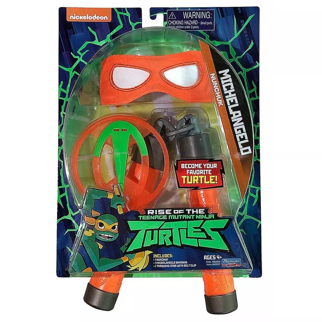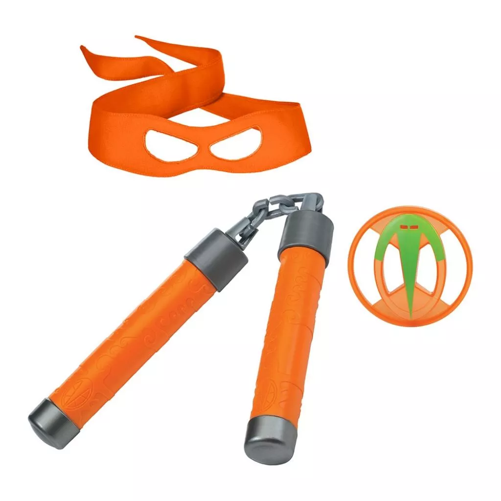 Cнаряжение Микеланджело – нунчаки – настоящая находка для юного ниндзя! Почувствуйте себя героем, ведь теперь есть возможность перевоплощаться в своих любимых персонажей с помощью банданы, вооружившись их реалистичным оружием.