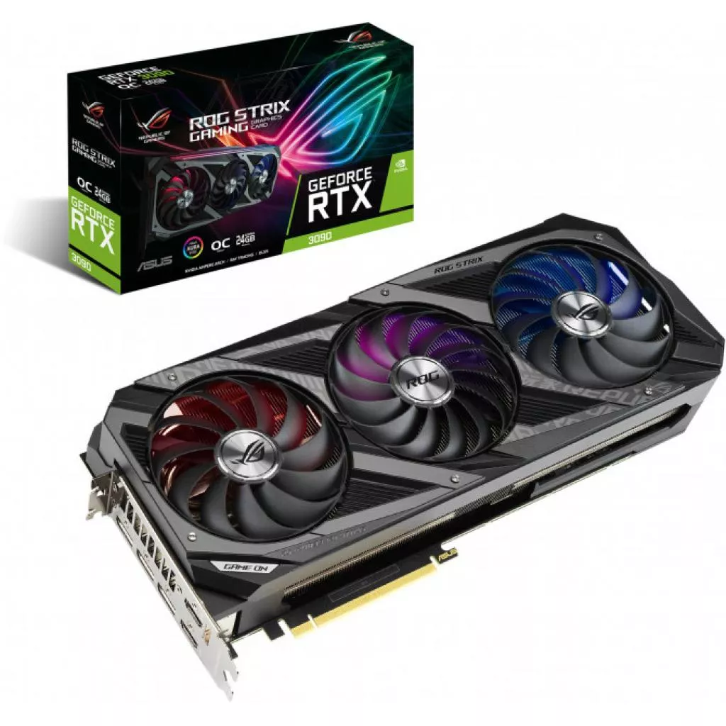 Рассчитанная на игры нового поколения, ROG Strix GeForce RTX 3090 – это радикально переработанная видеокарта, способная раскрыть всю мощь графического процессора NVIDIA с микроархитектурой Ampere. Свежий дизайн, эффективный кулер с оптимизированными вентиляторами Axial-tech, массивный радиатор – большие и малые улучшения коснулись каждого аспекта устройства, захватив даже усилительную пластину на обратной стороне печатной платы. Самые передовые технологии в области игровых видеокарт – теперь в вашем распоряжении!