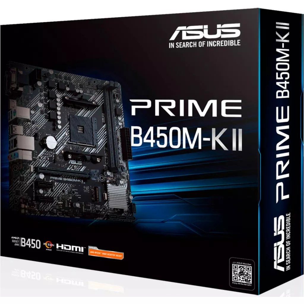 Материнская плата ASUS Prime B450M-K II обеспечивает прочную основу, необходимую для вашей первой сборки, а также гибкость, позволяющую расти вместе с вашими амбициями.