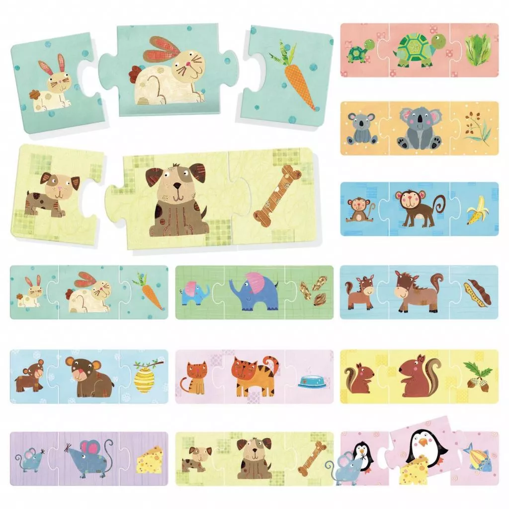 Ребенок получит удовольствие, связывая счастливых животных с их собственными детенышами и с едой, которую каждый предпочитает. Самокорректирующиеся вставки помогут развить логическое мышление.