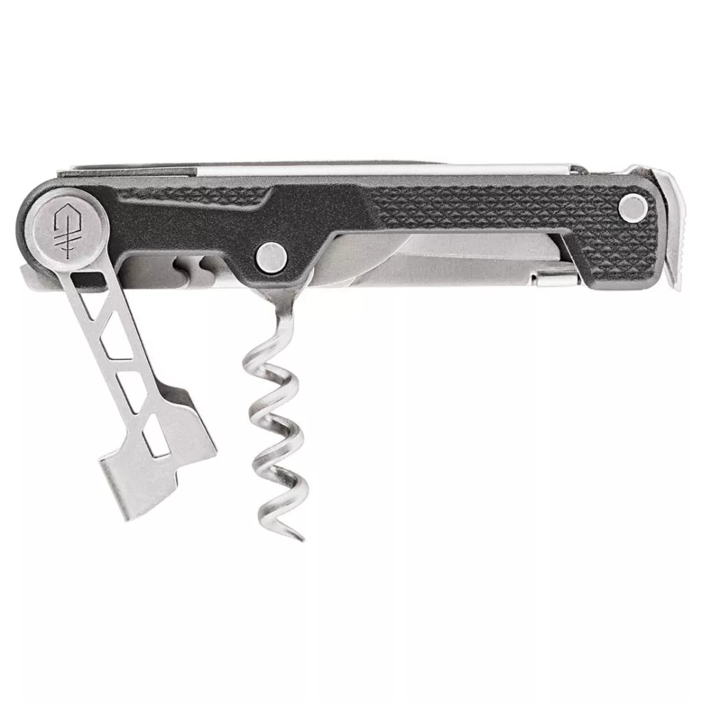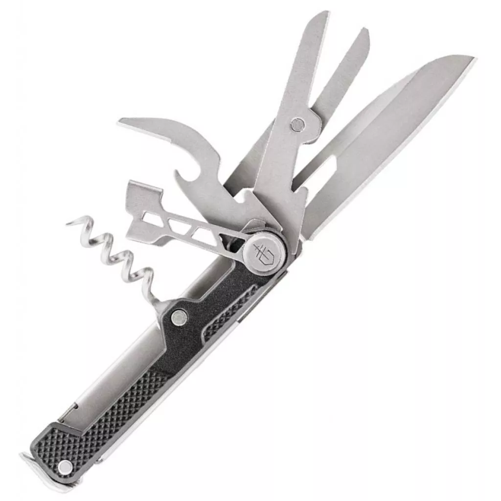 Многоперечень функций и возможностейьный инструмент включает в себя: лезвие с гладкой кромкой, ножницы, монтировку, открывалку для бутылок, консервный нож, резак для фольги, рычаг и штопор. Также здесь имеется нож складной конструкции. Замечательный вариант для использование (эксплуатации) на вылазке, на пикнике, когда появляется потребность в распитии напитков и закусках.