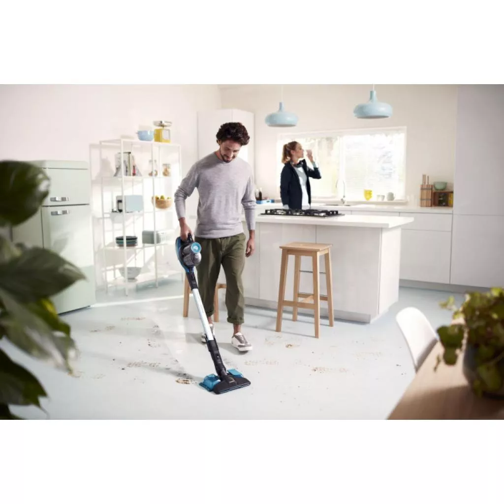 Аксессуары легко достать и установить. Съемный ручной блок превращает SpeedPro в два разных прибора, а чистящая насадка встроена в трубу, так что всегда будет под рукой для очистки потолков и полок.