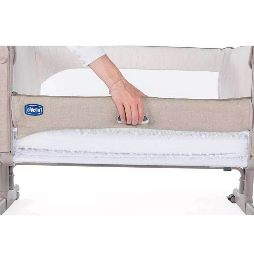 Chicco Next2Me Magic — это приставная кроватка-колыбель с режимом укачивания, специально созданная для комфортного совместного сна. Новый механизм опускания боковины в кроватки очень удобен и прост в использовании — положение боковины меняется одной рукой!