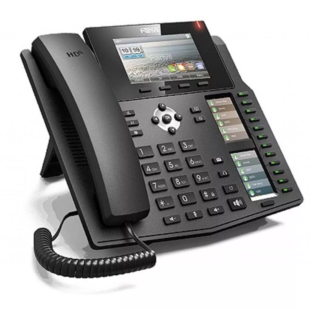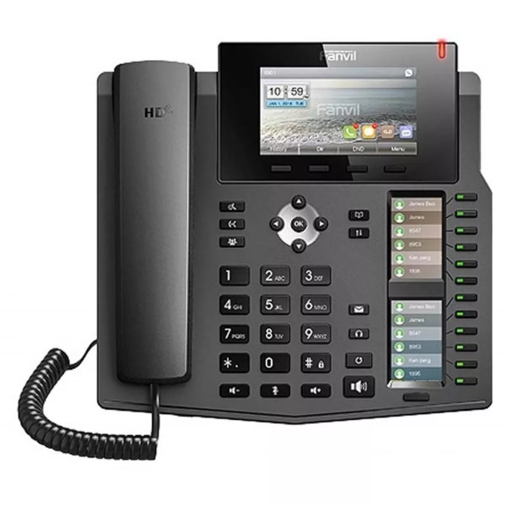 VoIP-телефон Fanvil X6U идеально подходит для установки на стойке регистрации и везде, где необходим контроль, благодаря 60 программируемым клавишам, большому цветному дисплею, который также обеспечивает декодирование видео для отображения с совместимой IP-видеокамеры или даже IP-видеодомофона.
