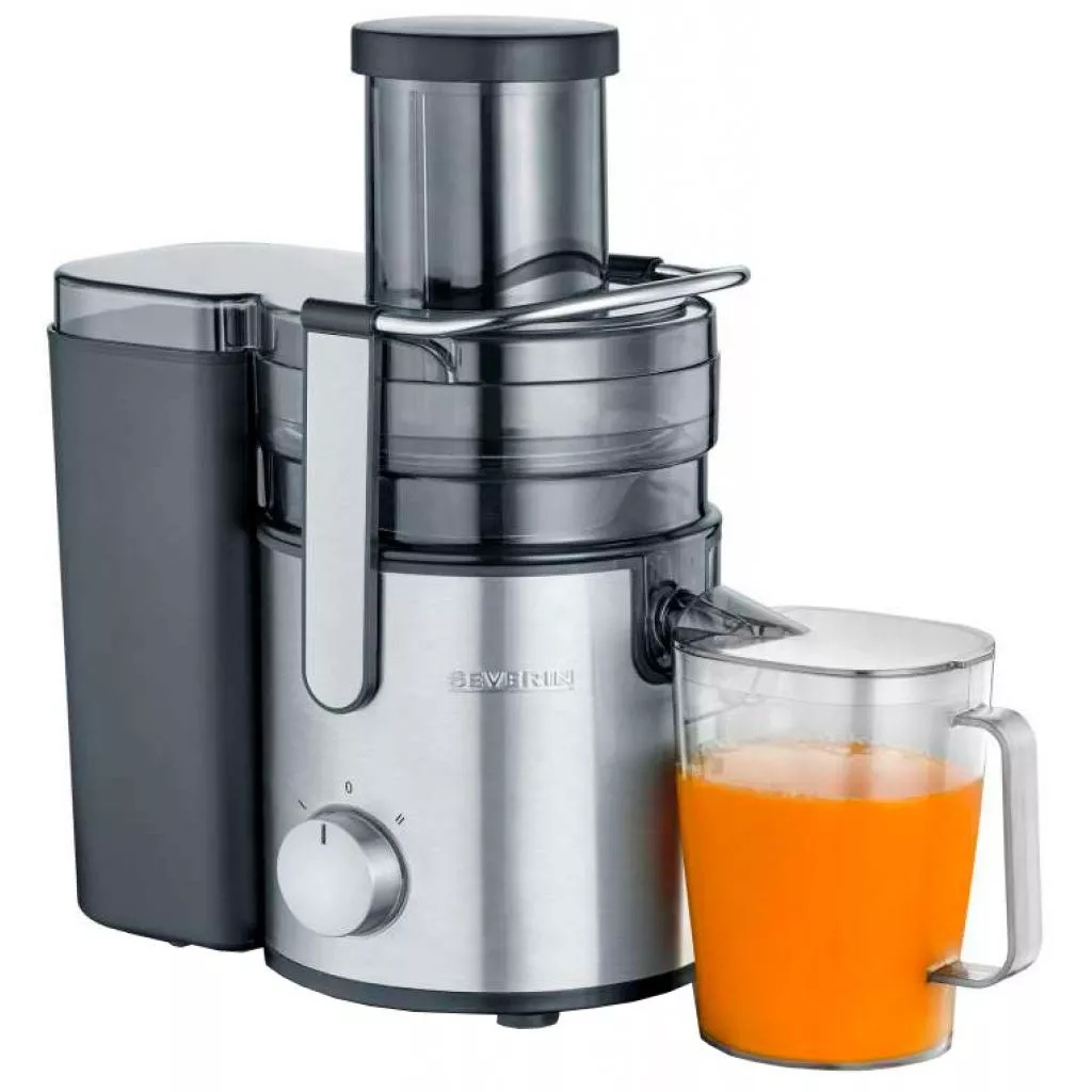 Соковыжималка Severin ES 3570 принадлежит к центробежным моделям. Такая техника превращает ингредиенты в кашицу и выжимает из них сок. Подходит для мягких фруктов, ягод, томатов. В вашем распоряжении 2 скорости, каждая из которых разделяет жмых и сок в соответствующие резервуары.