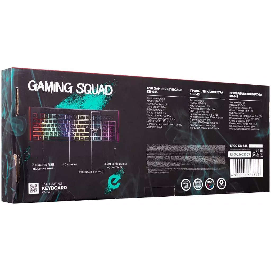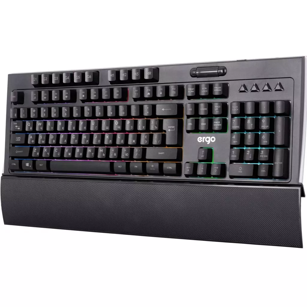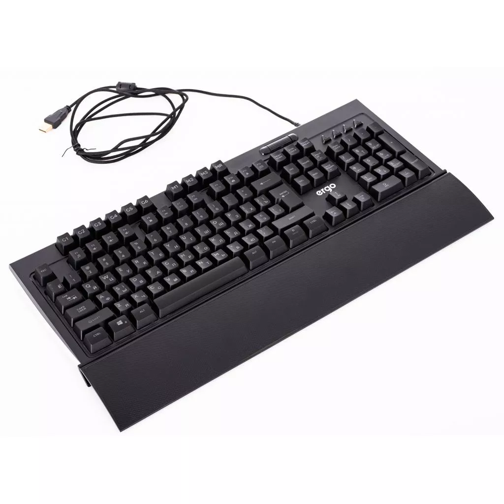 Игровая клавиатура ERGO KB-645 – стильный и комфортный аксессуар для игр или набора текста. Специальная конструкция дает возможность удобно удачно расположить запястья, благодаря чему они не напрягаются и дольше не устают. Мембранная клавиатура оснащен и укомплектована 115 клавишами и кнопкой контроля громкости, которая дает возможность настроить оптимальный звук.