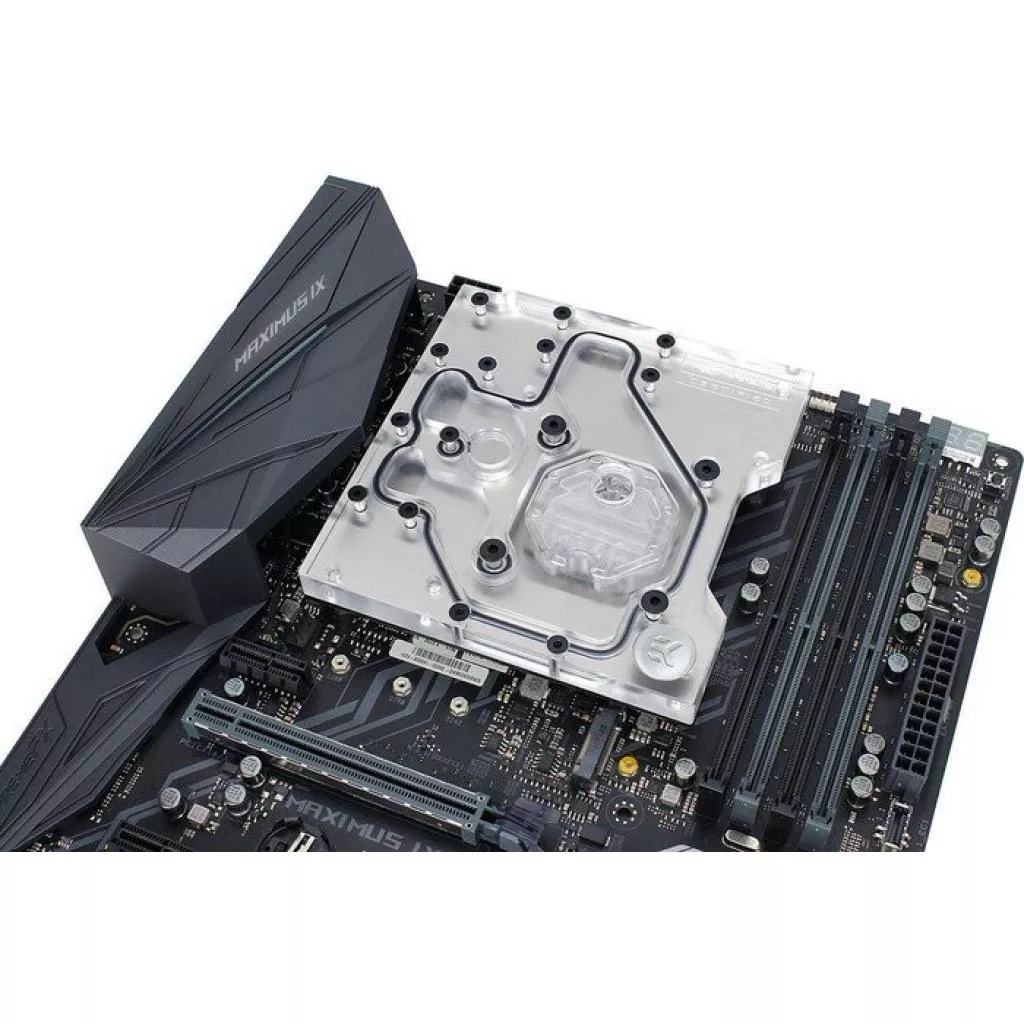 EK-FB Asus Maximus IX Hero Monoblock — решение всё-в-одном, которое предназначено для жидкостного охлаждения процессора и материнской платы. Водоблок разработан и спроектирован в сотрудничестве с компанией ASUS.