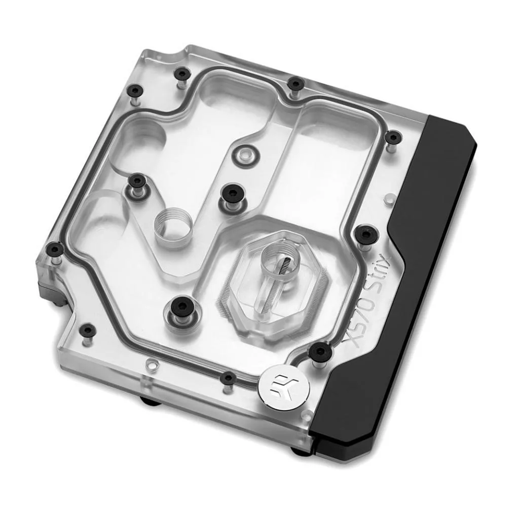 EKWB EK-Quantum Momentum ROG Strix X570-E D-RGB — Plexi – это специально разработанное комплексное моноблочное решение «all-in-one»для жидкостного охлаждения процессора AMD Ryzen на сокете AM4 и силовой части совместимой материнской платы ASUS ROG Strix X570-E.