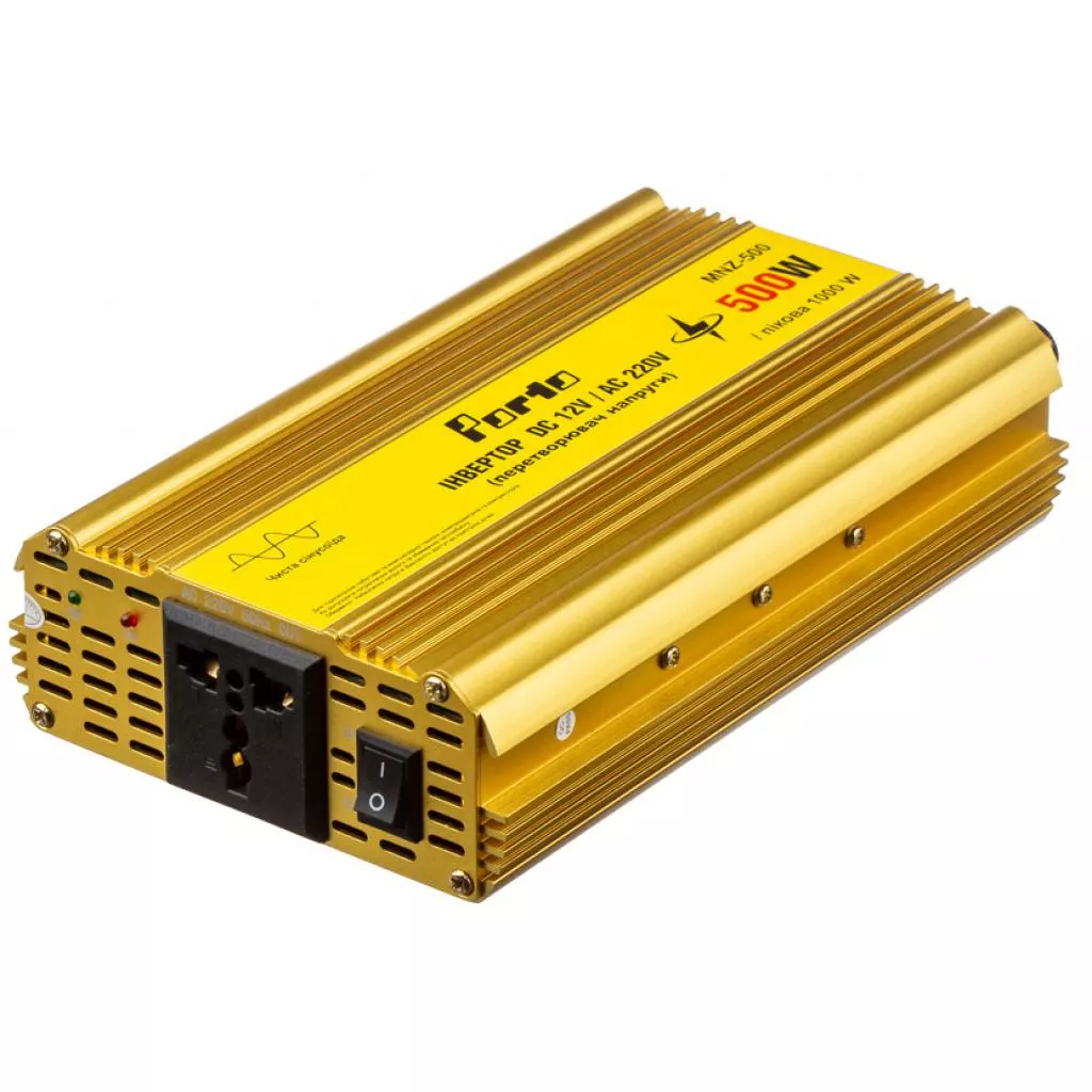 "Инвертор (преобразователь напряжения) 12/220V Porto MNZ-500 предназначен для питания устройств переменного тока AC220V с номинальной мощностью до 500W и пиковой можностью до 800W. Подключение к аккумулятору или генератору DC 12V производится с помощью пары силовых кабелей - в комплекте идет комплект кабелей с ""крокодилами"" длиной 50см.
