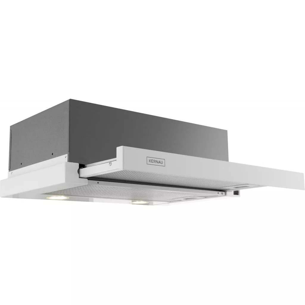 Очень перечень функций и возможностейьная, легкая в использовании телескопическая вытяжка бренда Kernau- это вытяжка последнего поколения, шириной 50 см. Она оснащен и укомплектована 2-ступенчатым двигателем и может работать как поглотитель, так и как обычная вытяжка. Легкие в очистке алюминиевые фильтры фильтруют и захватывают частицы жира, гарантируя свежий воздух на кухне. Угольные фильтры являются частью дополнительного оборудования. Светодиодное освещение обеспечивает надлежащую яркость и удобные условия для приготовления пищи, а механическая регулировка перекидными выключателями положительно влияет на удобство использование (эксплуатации) оборудования. Вытяжка прекрасно подойдет для маленьких кухонь.