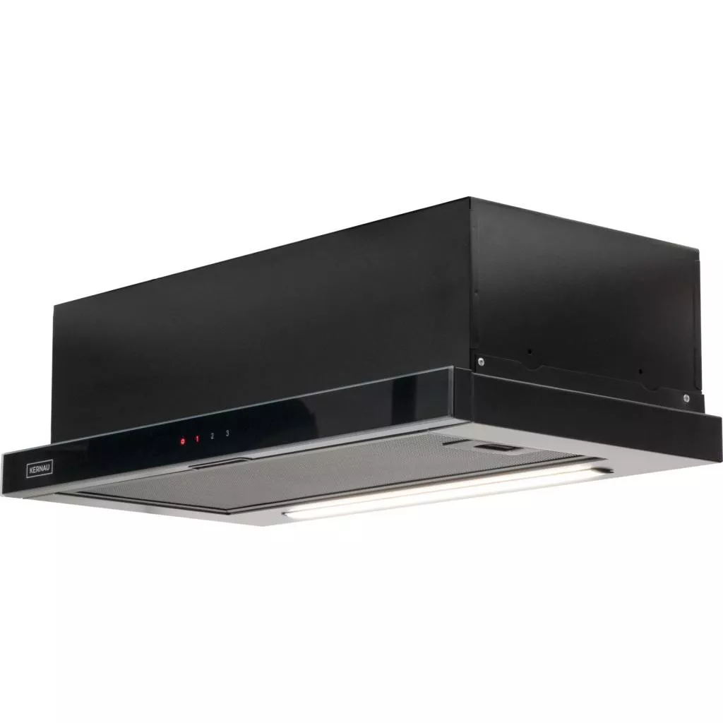 Телескопическая вытяжка KTH 12.160 B с возможностью установки в кухонный шкаф. Благодаря большой поглотительной поверхности и высокой эффективности, она беспроблемно лишает воздуха от нежелательных запахов на Вашей кухне. Светодиодная лента, установленная в устройстве, обеспечивает качественное освещение. Вытяжка имеет фильтр из черного алюминия, благодаря которому оборудование выглядит стильно и современно в общем интерьере кухни. Вытяжка оснащен и укомплектована сенсорным управлением, благодаря которому управление устройством чрезвычайно комфортно. Пользователю доступны 3 уровня работы вытяжки. Они дают возможность оптимально выбирать мощность работы, в зависимости от того, насколько интенсивны пары образуются во время приготовления.