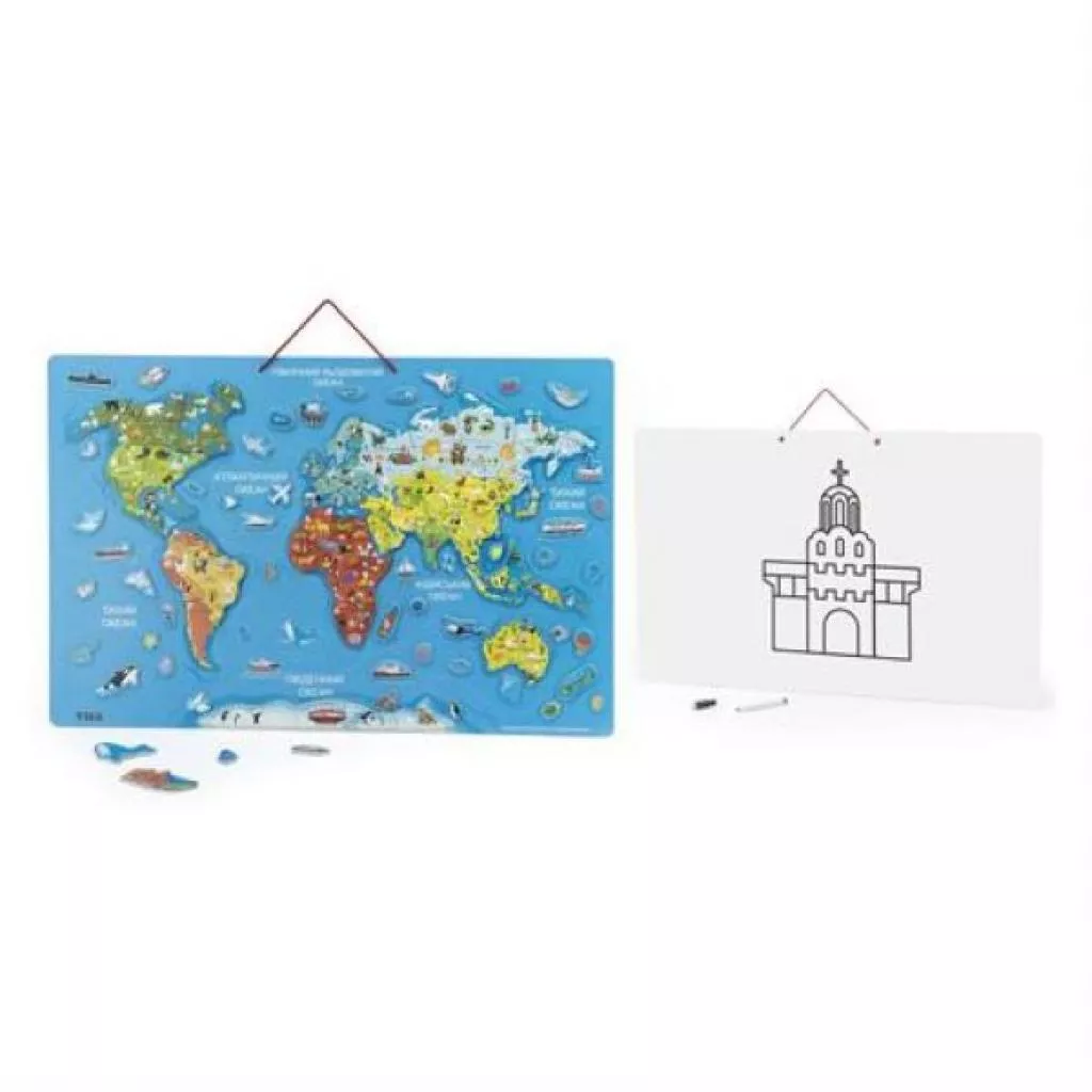 Карта мира вдохновит на новые игры, повысит любознательность, поможет развить воображение. Дети могут складывать ее вместе, наглядно изучая географию, общаясь и весело проводя время. Магнитная доска подходит для рисования, тренировки письма и счета.