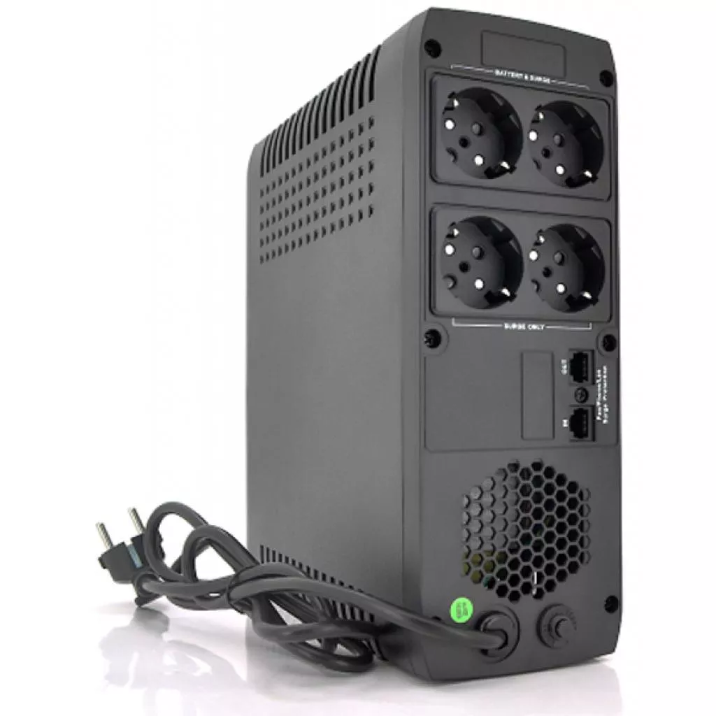 ИБП Merlion UDU 1000 (600W) LСD – регулирует напряжение, обеспечивая автономную и безопасную работу компьютерной и бытовой техники при скачках напряжения или отключения электроэнергии. Особенности: • Автоматически корректирует входное напряжение, защищая от его скачков; • Бесшумная работа; • Защита – Аварийное отключение – От короткого замыкания – От перегрузки • Холодный старт • Несквозной ноль • Стабилизация (AVR) Технические характеристики • Тип ИБП: Линейно-интерактивный • Входная частота, Гц: 50-60 • Входное напряжение, В: 162-2 • Выходное напряжение: 220±10% • Выходная мощность, Вт 600 • Коэффициент мощности: 0,6; • Форма выходного напряжения: аппроксимированная синусоида • Индикация: LСD • Время переключения на батареи, мс: 2 – 6 • Аккумуляторная батарея 12В 9Aч x 1 шт. • Возможность подключения внешних АКБ: нет • Количество розеток Schuko: 4 шт. • Тип предохранителя: термический • USB: - • Защита линий связи от грозы: - • Корпус: пластик • Цвет: черный • Рабочая температура, ºC: 0...+45 • Размер устройства (Д*Ш*В), мм: 99х277х290 • Масса, кг: 8.1