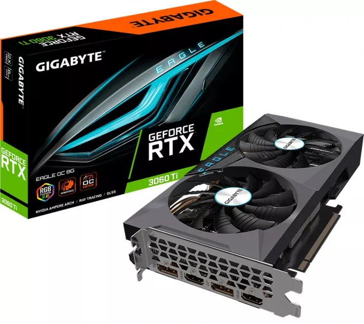 Семейство графики - NVIDIA, Серия - GeForce RTX 3060 Ti, интерфейс - PCI Express 4.0 x16, объем встроенной памяти - 8ГБ, тип памяти - GDDR6, разрядность шины памяти - 256 bit, Частота ядра (Boost) 1695 MHz, Частота памяти - 14000 MHz, разъемы - 2 x HDMI 2.0b, 2 x DisplayPort 1.4a, тип системы охлаждения - активный, вид охлаждения - радиатор, разъемы дополнительного питания - 8 pin