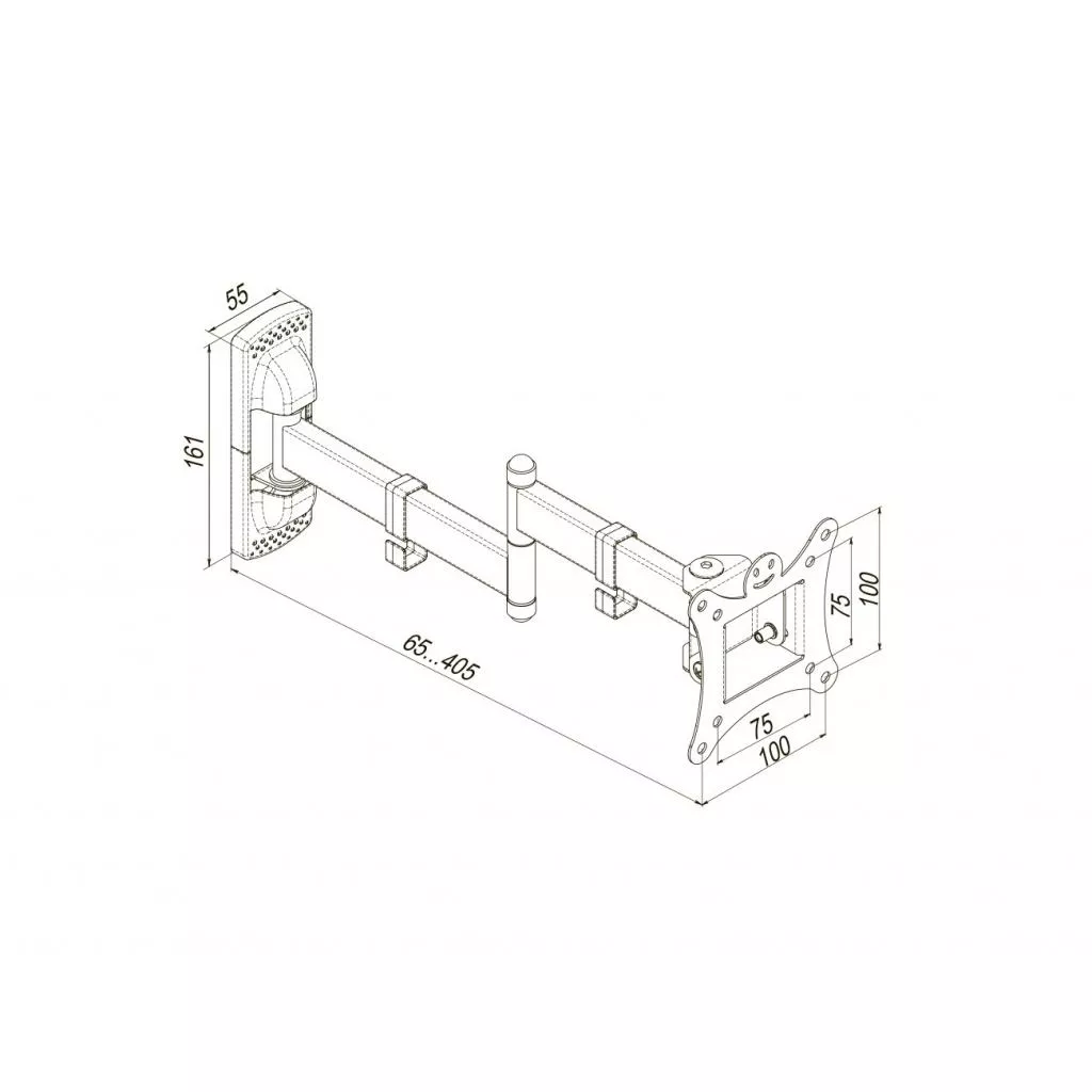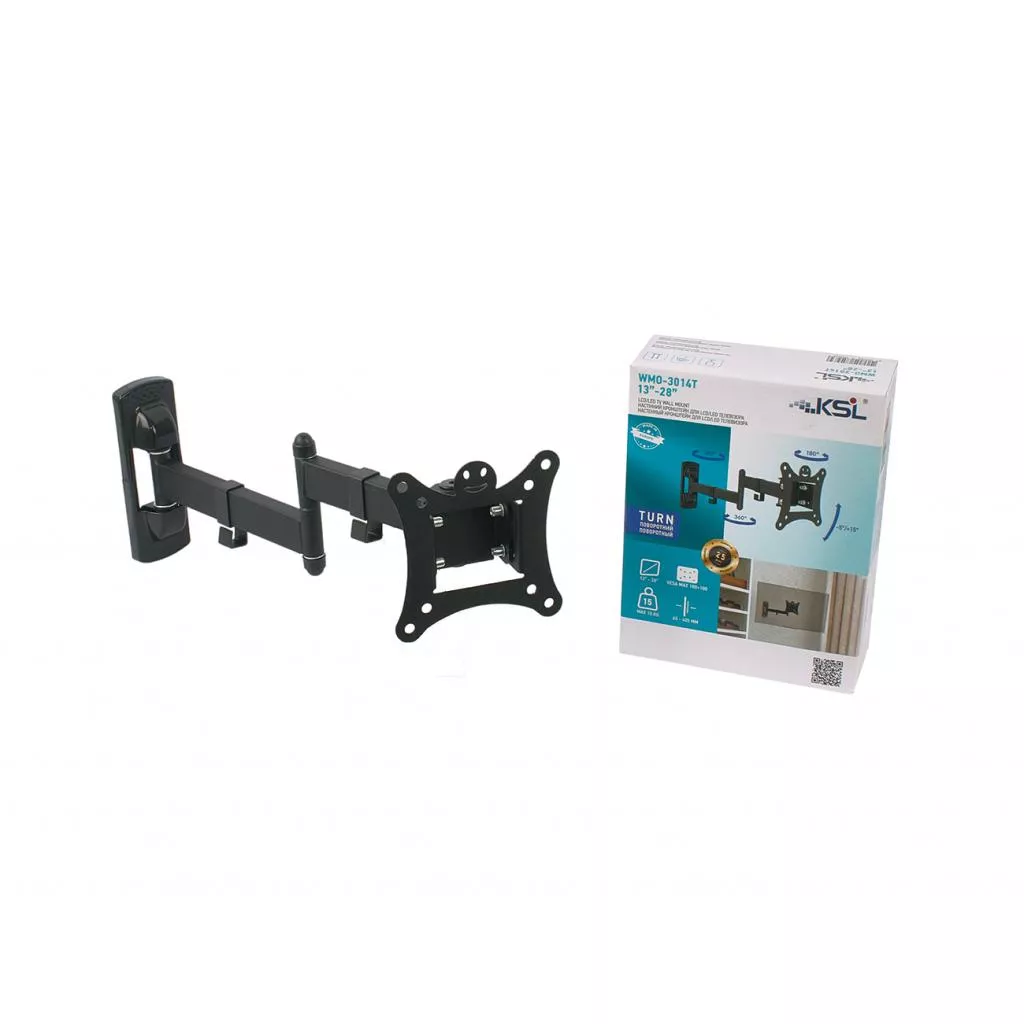Поворотный кронштейн WMO-3014T подходит для плазменных, LCD, LED телевизоров и мониторов с диагональю 13-28 дюйма и весом до 15 кг. Поддерживаемый стандарт VESA: от 75×75 мм до 100×100 мм