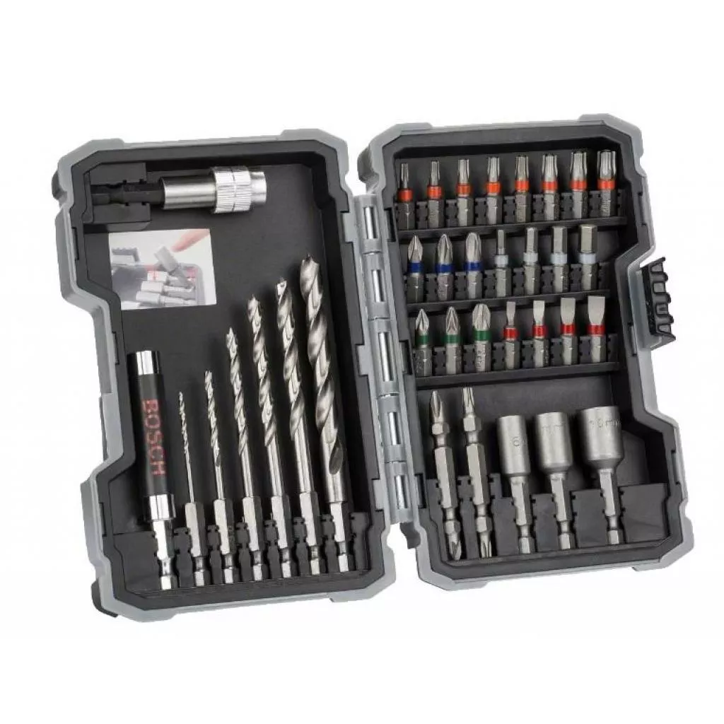 | Комплектация набора | держатель для бит, набор бит, сверла по дереву, торцовочные насадки |