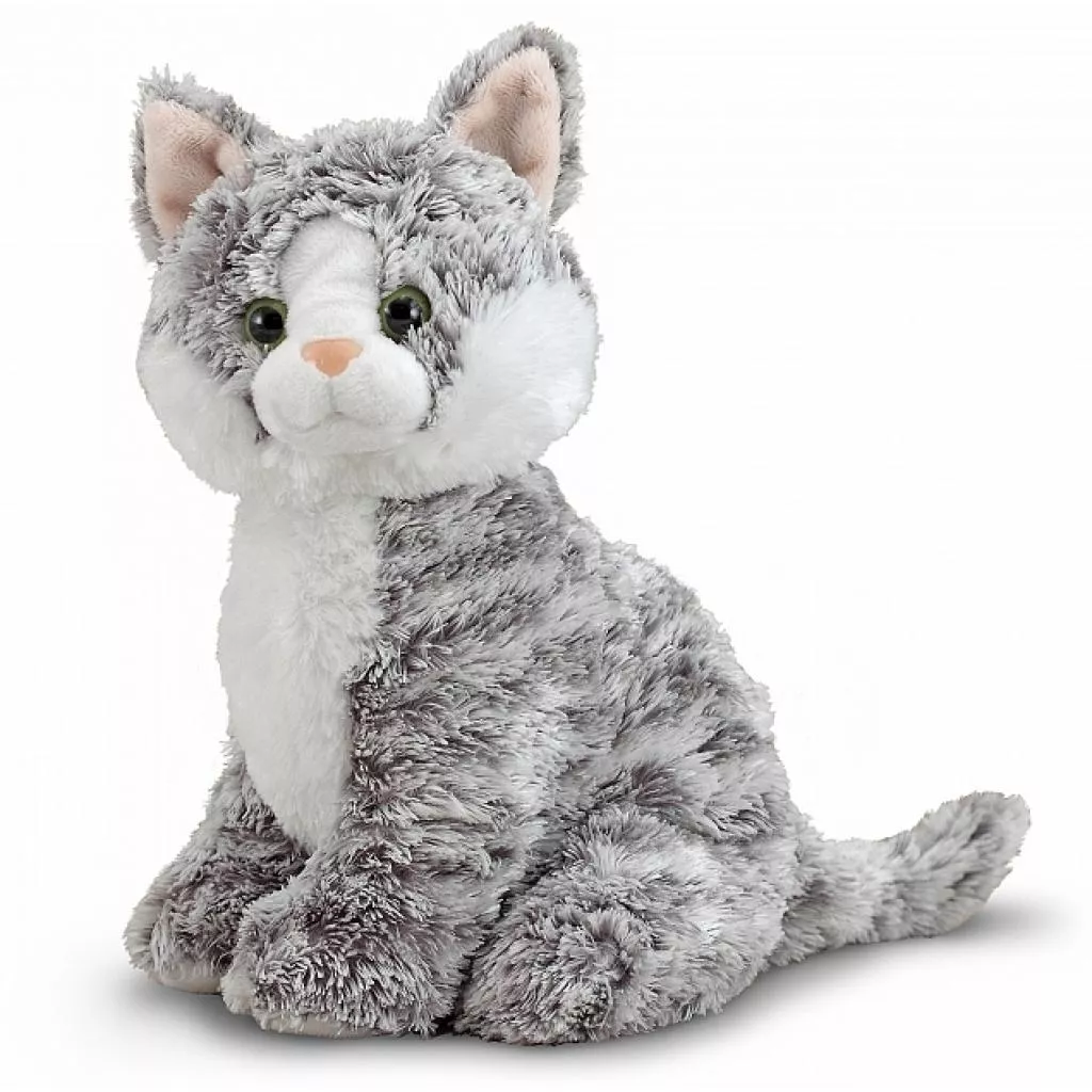 Котик Грейси имеет тонкий серый полосатый мех, от передних лап до кончиокв ушей - 25 см.