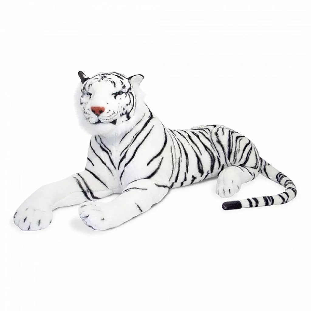 Этот элегантный белый сибирский тигр имеет реалистичные детали от кончика полосаого хвоста до подушечек на передних лапках. Сделан из мягкой полиэфирной ткани, длина 1,7 метра.